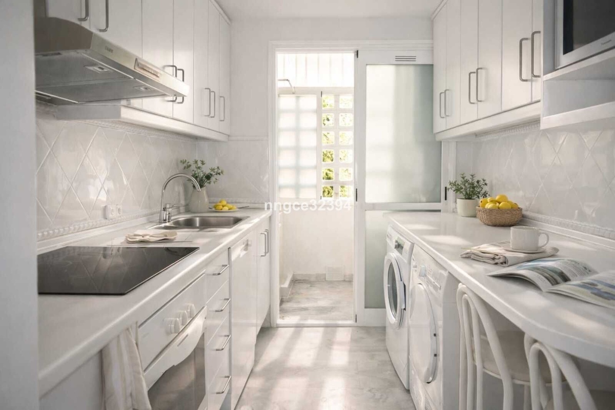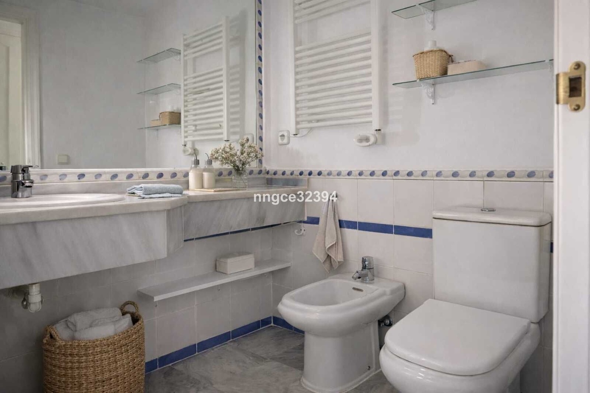 Denne nøglefærdige stueetagebolig tilbyder den ultimative livsstilslejlighed, der kombinerer sofistikation med komfort. Nyd en privat, indhegnet have på 55 m² og en elegant marmorpati på 40 m², der giver ekstra udendørs opholdsplads til afslapning eller underholdning, med panoramisk udsigt over golfbanen og det ikoniske La Concha-bjerg i baggrunden.