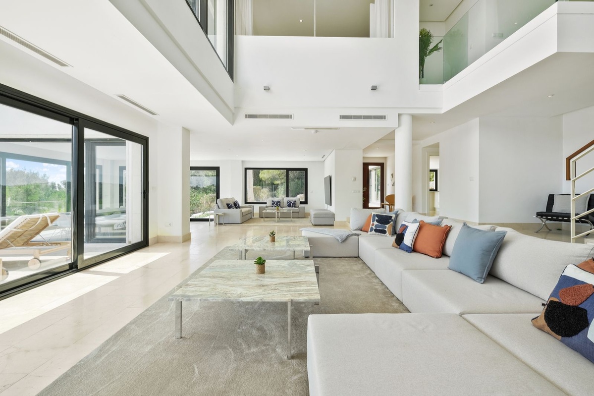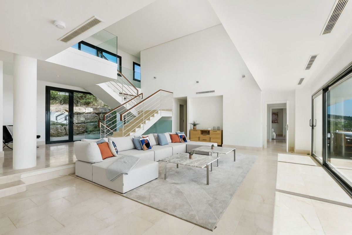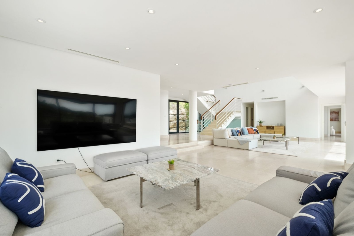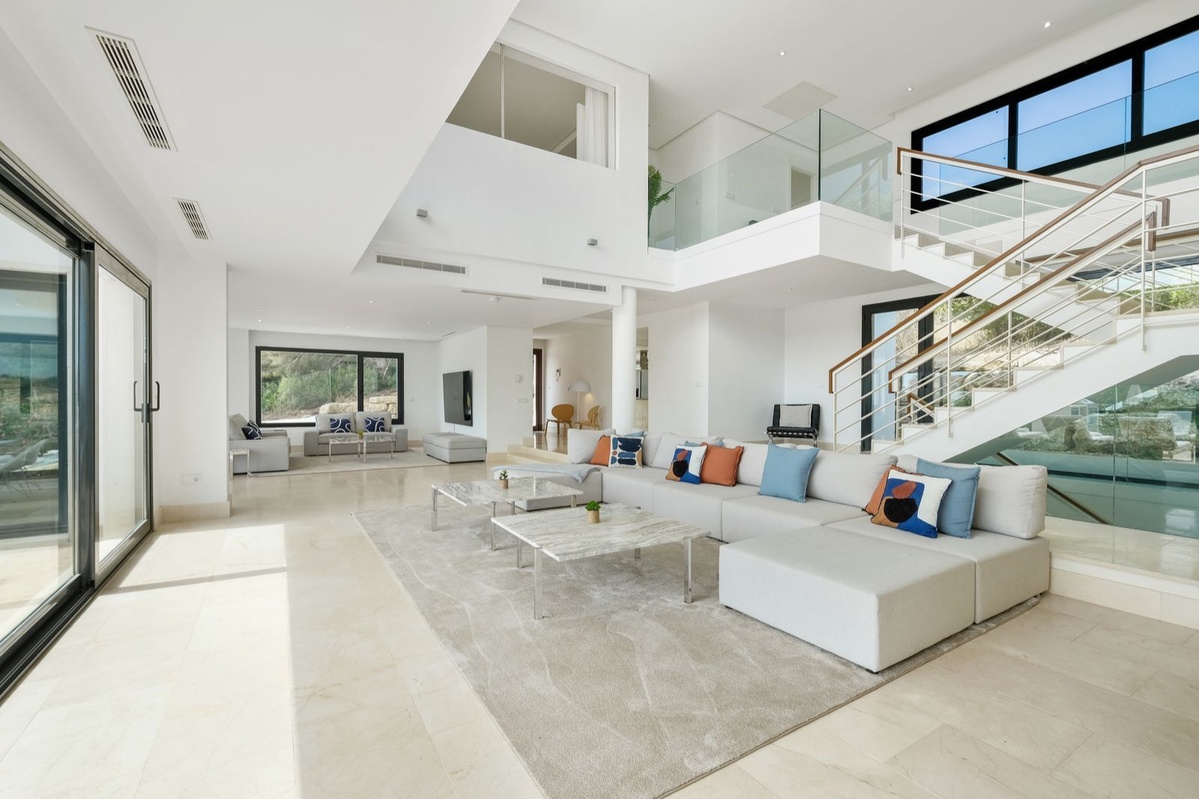 Spektakulært moderne hjem med syv soveværelser og panoramaudsigt over den prestigefyldte La Reserva golfbane og Middelhavet.