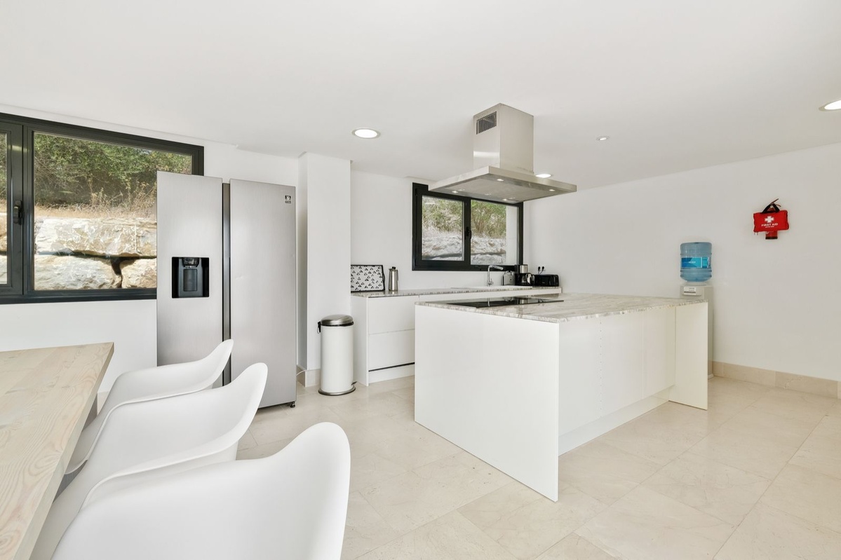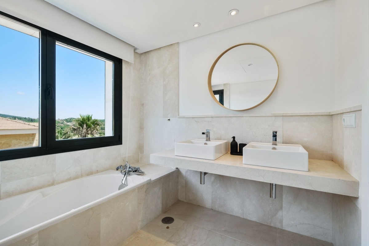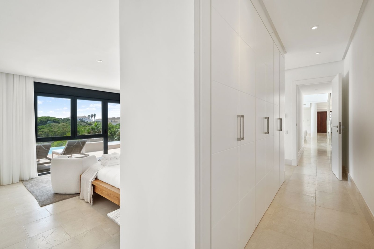 Denne villa ligger i det eksklusive, 24-timers sikrede område La Reserva de Sotogrande og byder på privatliv, elegance og bekvemmelighed. Du er kun en kort gåtur fra Sotogrande International School, hvilket gør det til et ideelt valg for familier.