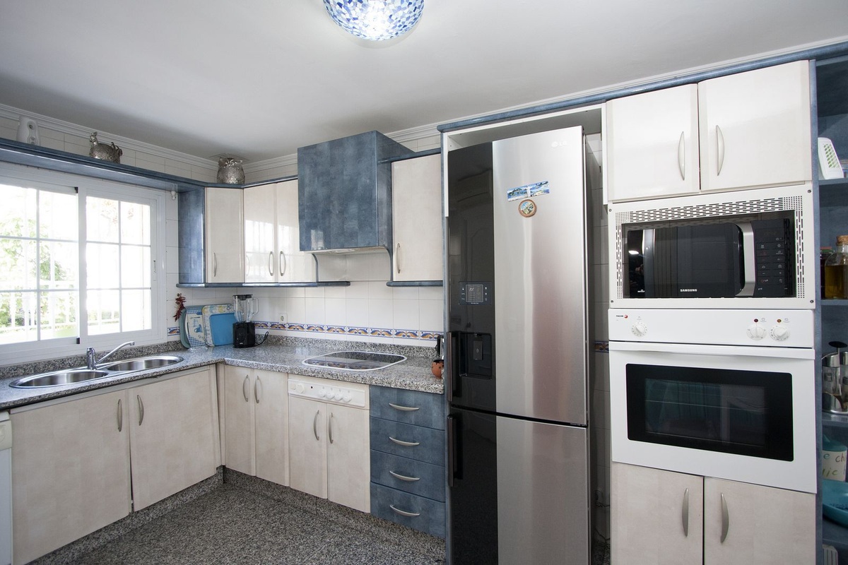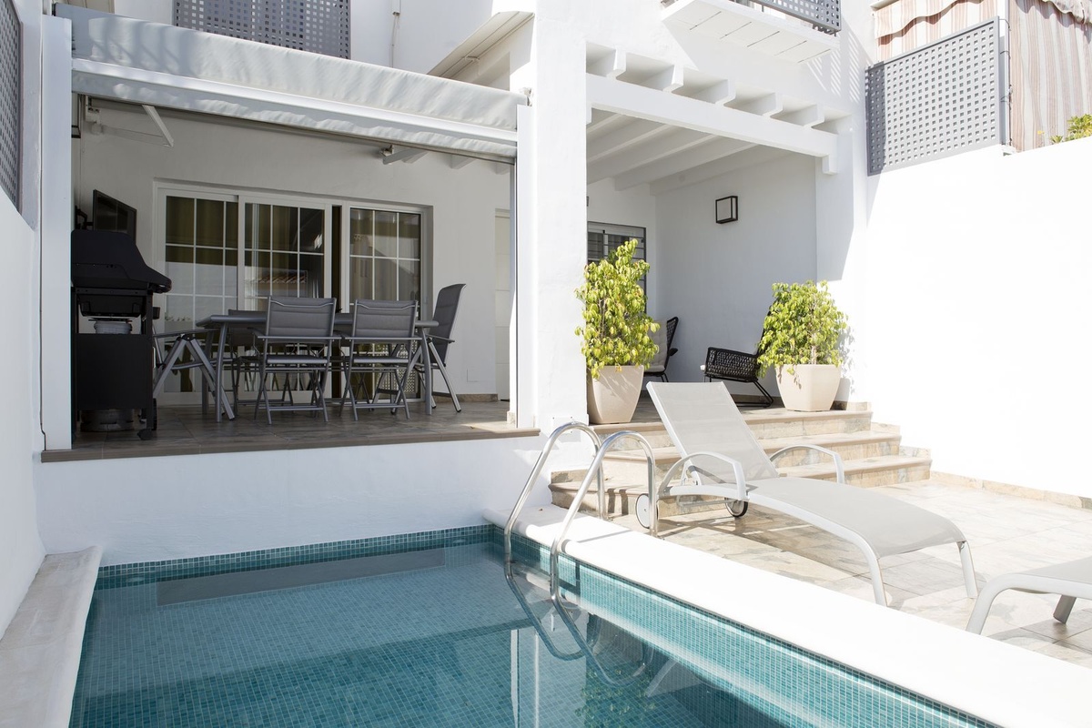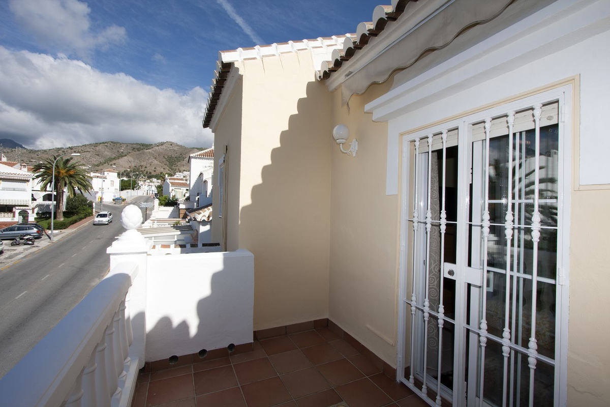 I El Condal, Nerja ligger dette rummelige rækkehus med privat pool. Det er en komfortabel og praktisk bolig med godt udnyttede rum og flere områder til både indendørs og udendørs brug.