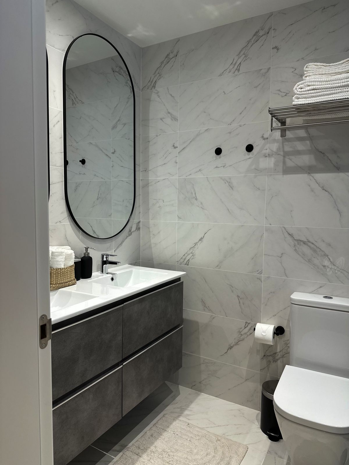 Træd ind i moderne kystluksus med denne fantastiske, helt nye lejlighed i en 2025-designet bygning på Calle Melilla, 55, Puerto de Estepona. Denne perle med 2 soveværelser og 2 badeværelser har 87 m² brugbar plads og er fuldt møbleret og klar til at flytte ind ("a estrenar") og tilbyder en sømløs blanding af moderne design og uovertruffen beliggenhed. Den åbne planløsning har en rummelig stue med spisekøkken (28,15 m²), to komfortable soveværelser (12,54 m² og 10,59 m²), to moderne badeværelser, en hall (3,53 m²) og terrasser til udendørs nydelse - alt sammen med elevatoradgang for ultimativ bekvemmelighed.