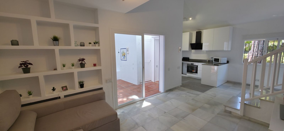 Vi præsenterer dette smukt ombyggede 4-værelses hjørne rækkehus til salg i Benamara Pueblo, et af de mest charmerende strandsamfund på New Golden Mile mellem San Pedro de Alcántara og Estepona.Perfekt placeret kun en kort gåtur til stranden, denne ejendom kombinerer andalusisk karakter med moderne opgraderinger, hvilket gør den til en ideel familiebolig, feriested eller højudbytte investeringsejendom på Costa del Sol.