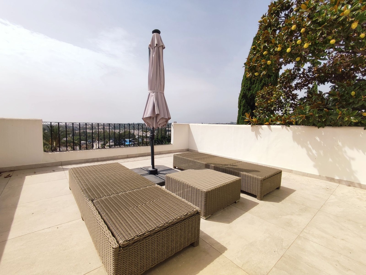 Beliggende i et fredeligt, velholdt samfund med frodige haver, en stor fælles swimmingpool og en café på stedet, kombinerer dette hjem moderne komfort med resort-stil, der bor i en af Marbellas mest efterspurgte områder.
