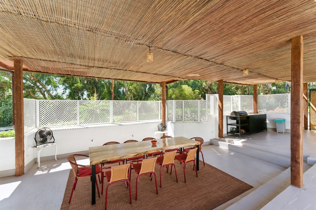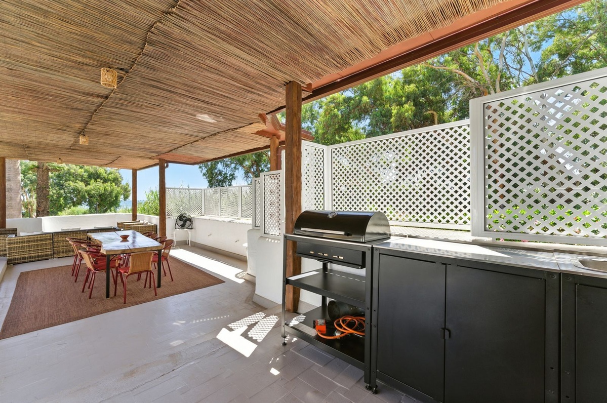 Højdepunktet er den private tagterrasse, der kan prale af panoramaudsigt over havet, bjergene og frodige haver - et idyllisk sted til solbadning, spisning eller nyde en afslappende grill.