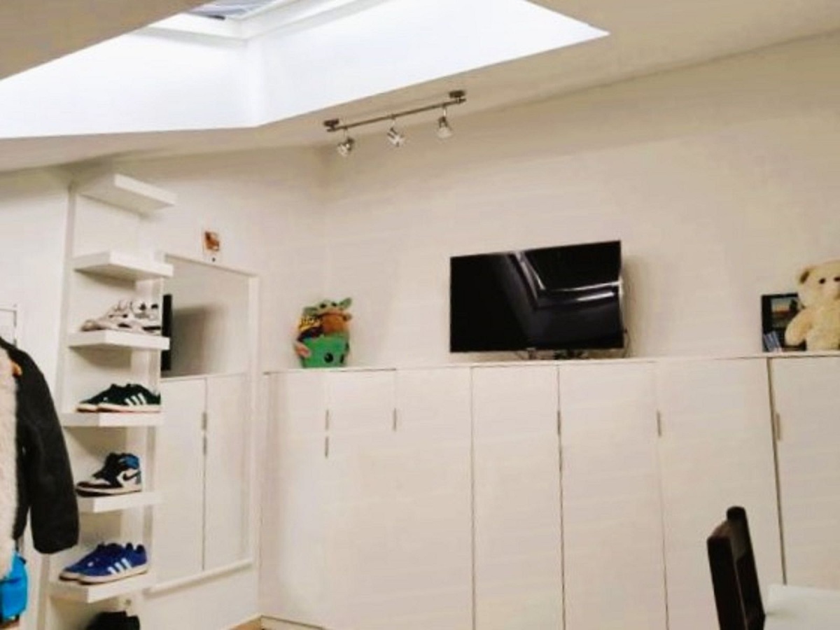 The main floor has an elegant living room with access to the L-shaped terrace, a spacious kitchen-diner of approximately 30 m² with space for a large table seating up to 8 people and direct access to the terrace. On this level you will also find the master suite, with its fully renovated bathroom, as well as a guest toilet.