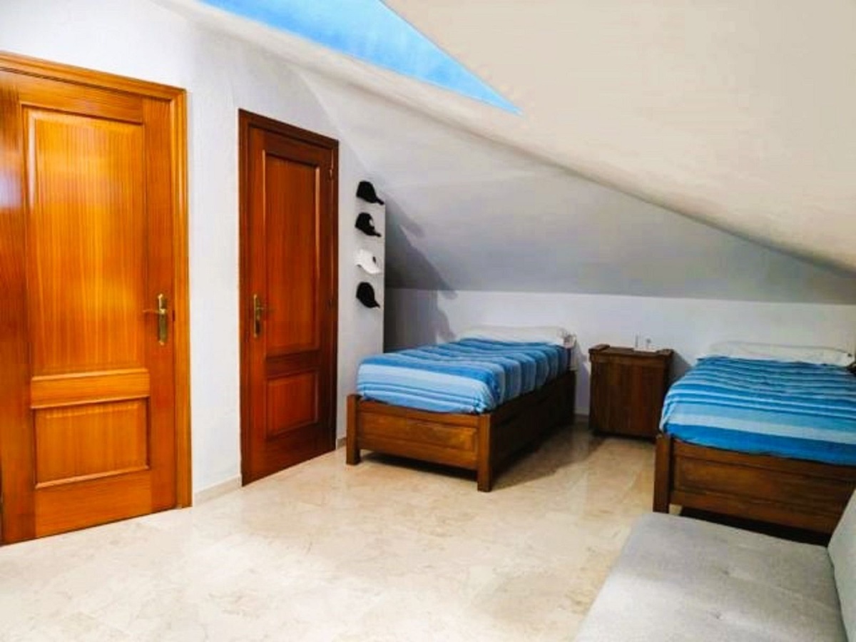 On the upper floor there are two additional bedrooms with fitted wardrobes, a large shared dressing room and a double bathroom. The property has ample storage space, marble floors, hot/cold air conditioning and a very practical layout.