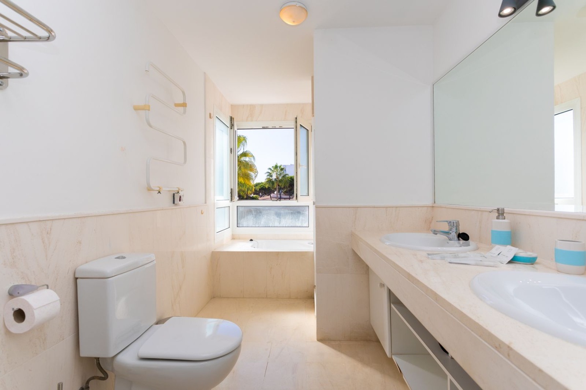 3 soveværelser og 2 badeværelser, inklusive en master suite med eget badeværelse komplet med badekar og separat bruser.
