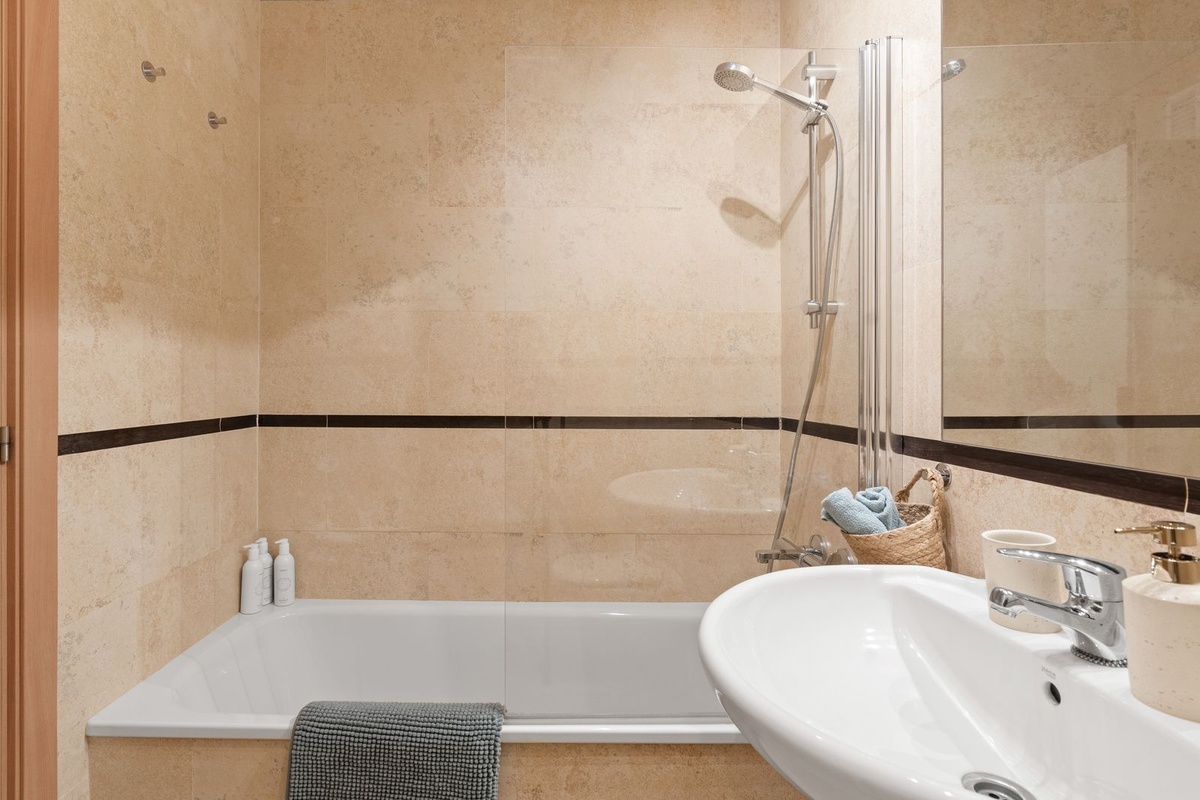 Discover the perfect coastal retreat in this spacious ground floor apartment located on the sought-after New Golden Mile, just a stone's throw from the beach(100 meters). With a generous total area of 163 m², this property features two well-appointed double bedrooms and two large bathrooms, making it ideal for families or those seeking extra space. The exquisite living and dining room opens to two semi-covered terraces, perfect for enjoying the Mediterranean climate.