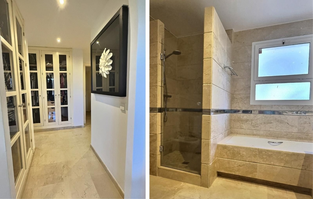 This property features marble floors, hot & cold air conditioning, and underfloor heating in the bathrooms, ensuring year-round comfort. It also includes 2 underground parking spaces, 2 storerooms, and 2 golf buggy parking spaces, all included in the price.
