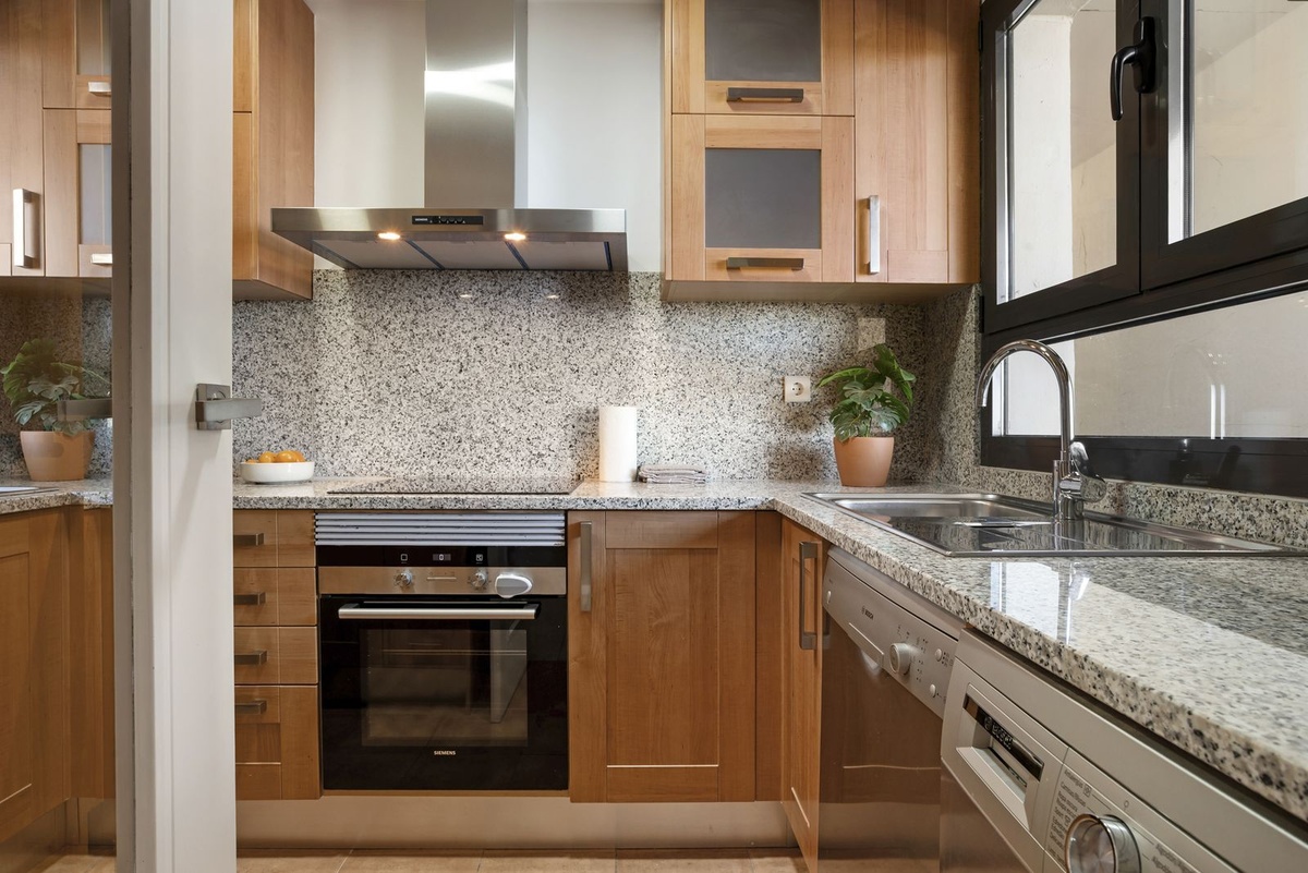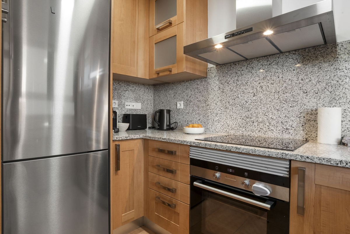 The spacious and bright living room connects directly to the sunny terrace, where you can enjoy impressive views of the surroundings and even Gibraltar. Together with the fully equipped kitchen, it creates a welcoming living space perfectly suited for long-term stays. The kitchen is fitted with all necessary appliances, ensuring you have everything you need throughout your stay.