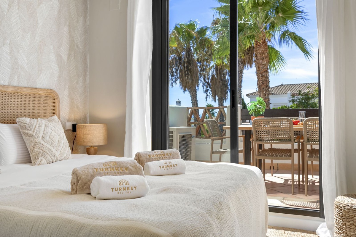 Sunset Golf is an exclusive Mediterranean residential complex, beautifully located on the La Resina Golf Course in Estepona, along the stunning Costa del Sol. This modern apartment features two bedrooms and two bathrooms. The master bedroom includes an ensuite bathroom and a comfortable double bed, while the second bedroom is furnished with two single beds – ideal for family or guests.
