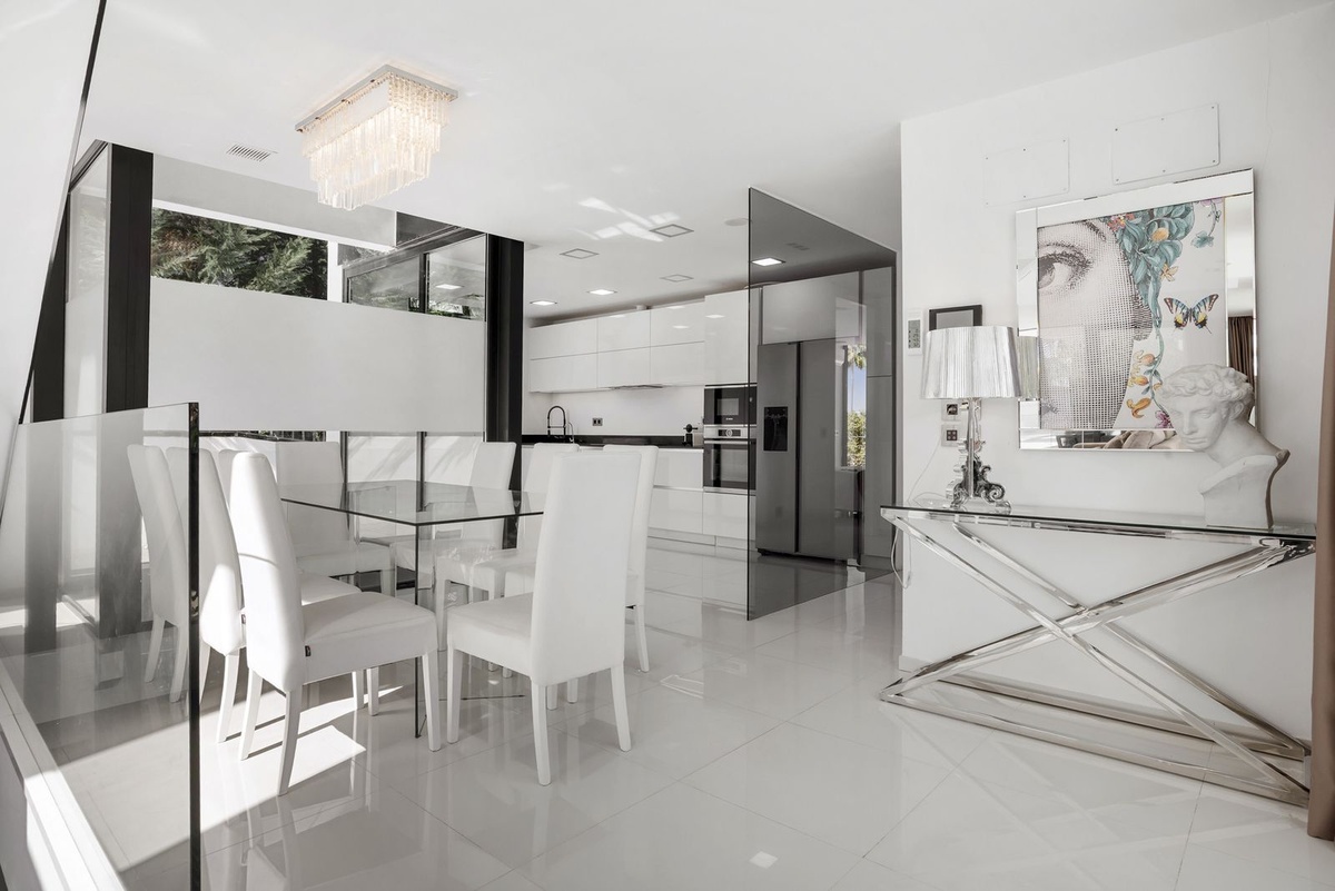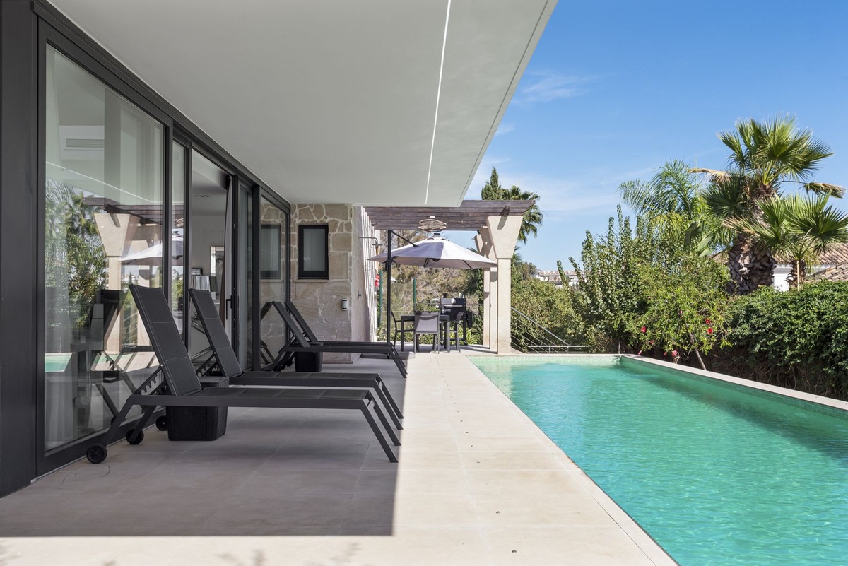 Nestled in the prestigious enclave of La Cerquilla, Villa La Cerquilla is a sanctuary of contemporary luxury surrounded by the beauty of Marbella’s Golf Valley. Behind its private gates, the residence opens onto five generous double bedrooms, including a refined master suite with its own bathroom. For greater versatility, a separate guest or staff apartment and a dedicated service room provide comfort and privacy for every lifestyle.