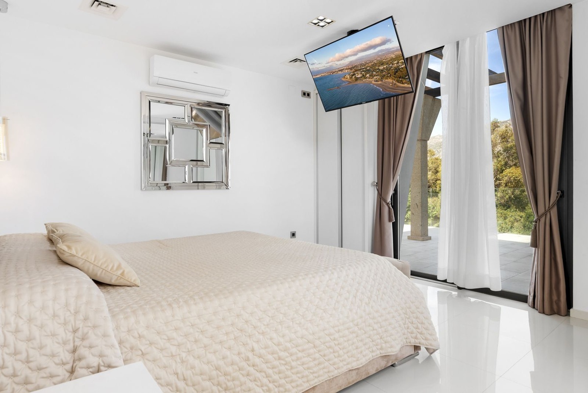 The interiors are bathed in natural light, seamlessly connecting a fully equipped modern kitchen, stylish living spaces, and the latest comforts including air conditioning, heating, and a discreet security system. Tastefully furnished throughout, the villa is sold fully equipped, ready to enjoy from day one.