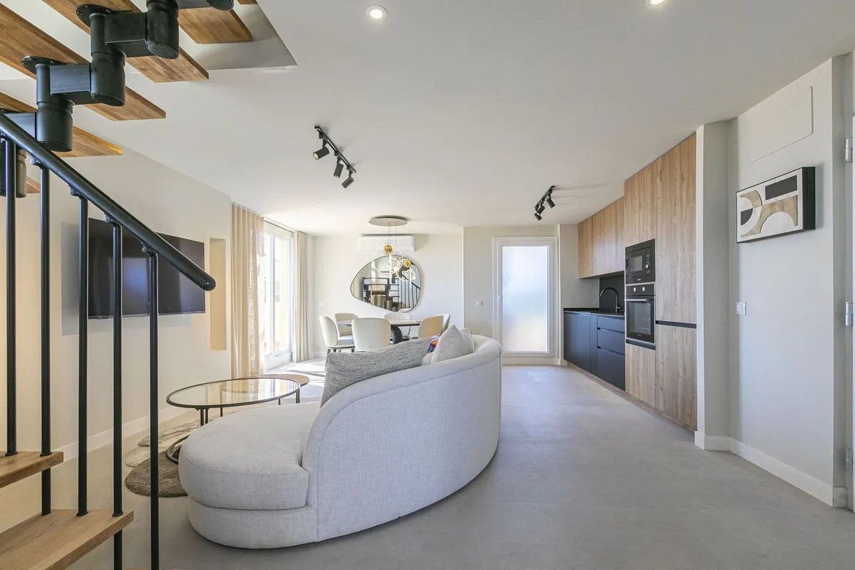 Discover the height of contemporary living in this stunning three-bedroom duplex penthouse, perfectly positioned within a prestigious gated community.
