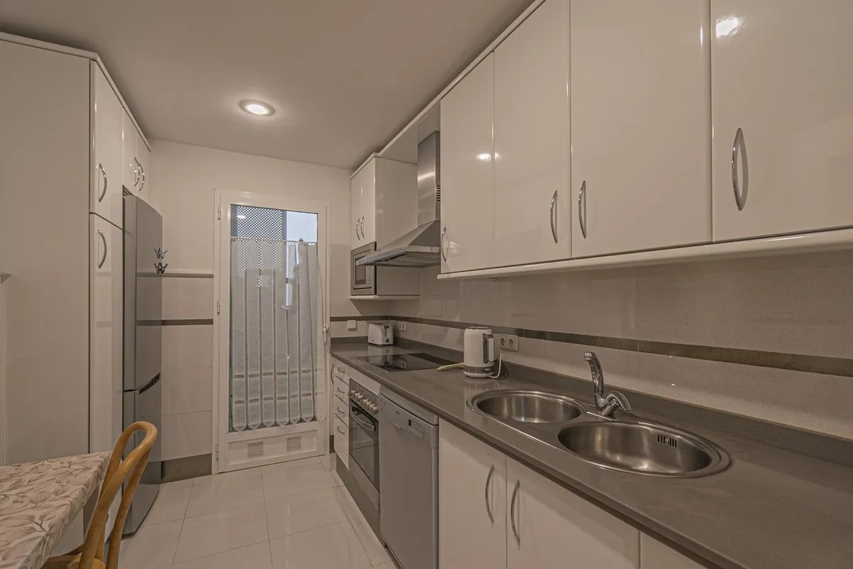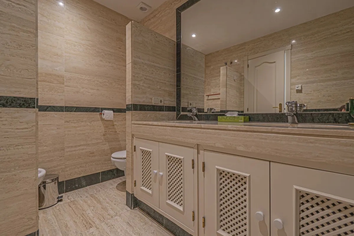 Elegant and spacious apartment, consisting of two bedrooms, two bathrooms plus a toilet, a large living room with a separate kitchen, and a terrace.