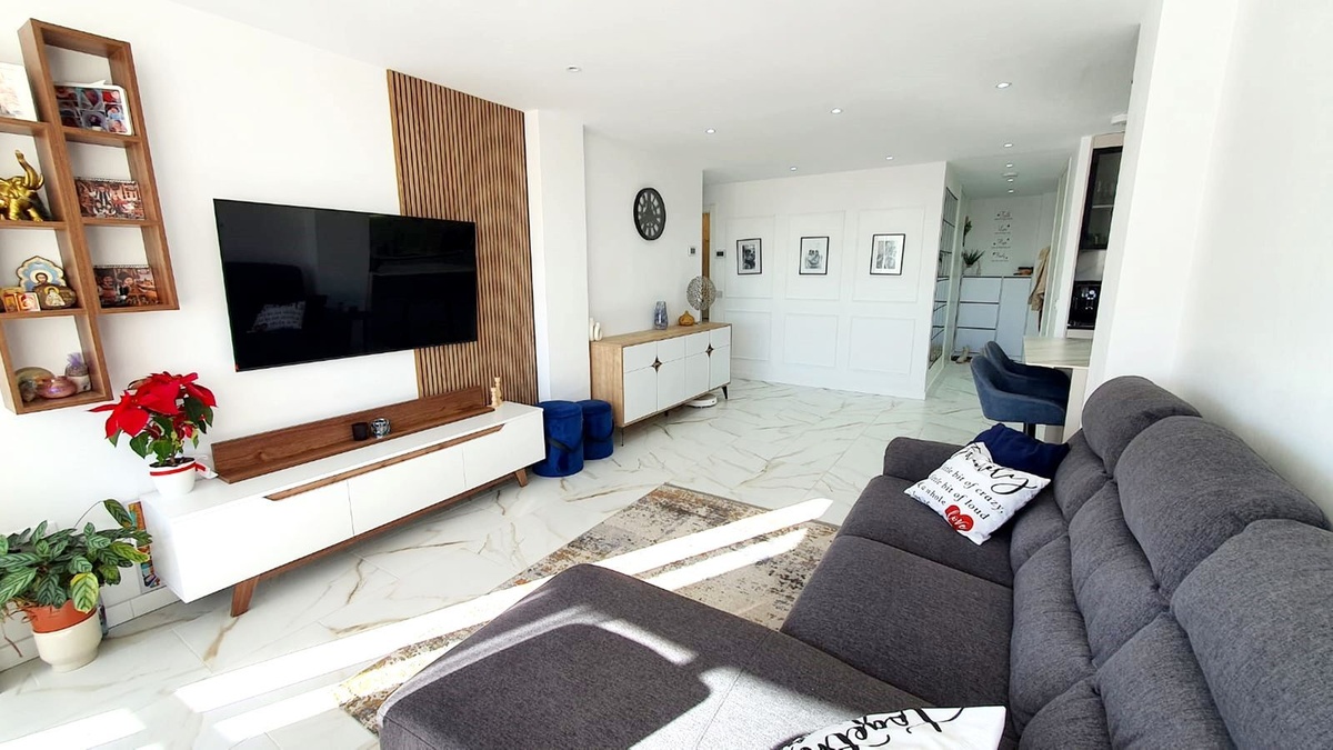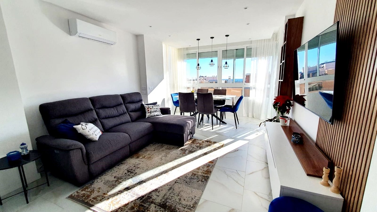Top-quality apartment for sale in Fuengirola, offering a modern open-plan design and high-end finishes throughout. This spacious and bright property has been completely refurbished, including new plumbing, electrics, and pre-installation for a home automation system.