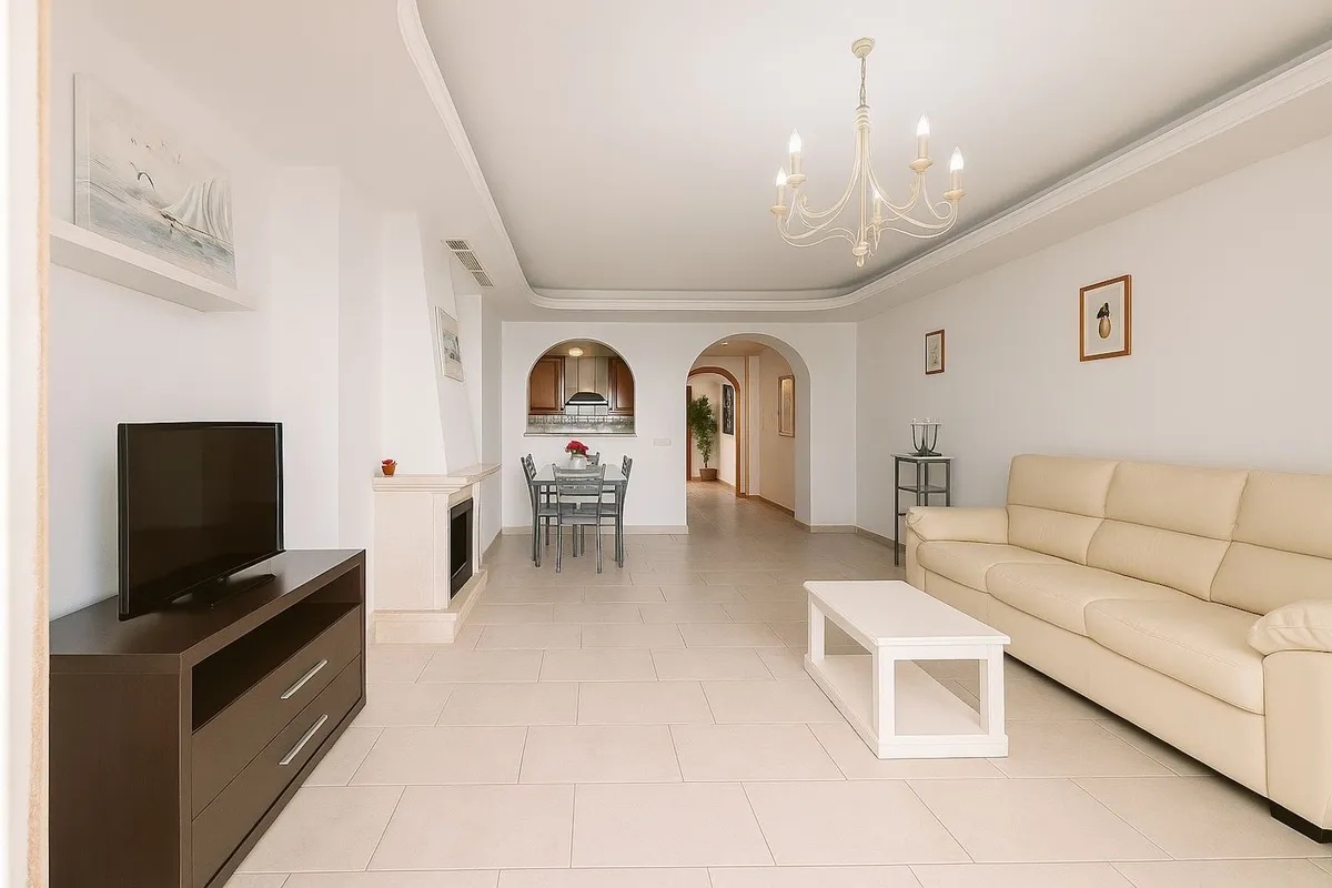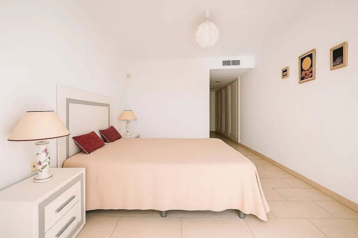 The property features two spacious bedrooms and two bathrooms (one with a bathtub and the other with a shower). The bright living-dining room offers direct access to a large terrace with panoramic views — perfect for enjoying the Mediterranean climate.