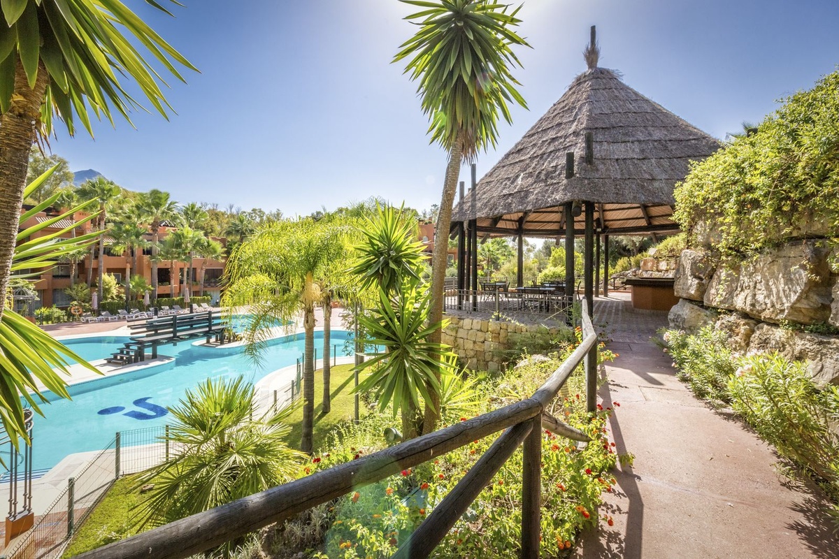 Set in one of Nueva Andalucia’s green communities with tropical gardens, a lake, and two pools, this southeast-facing ground-floor apartment is made for easy indoor-outdoor living.