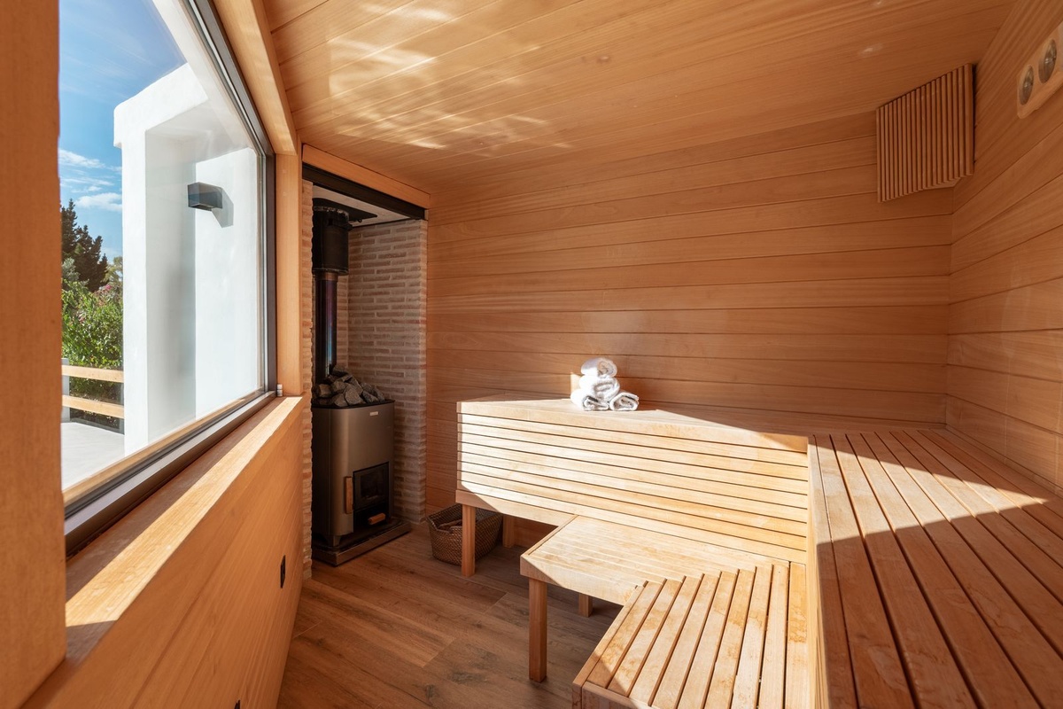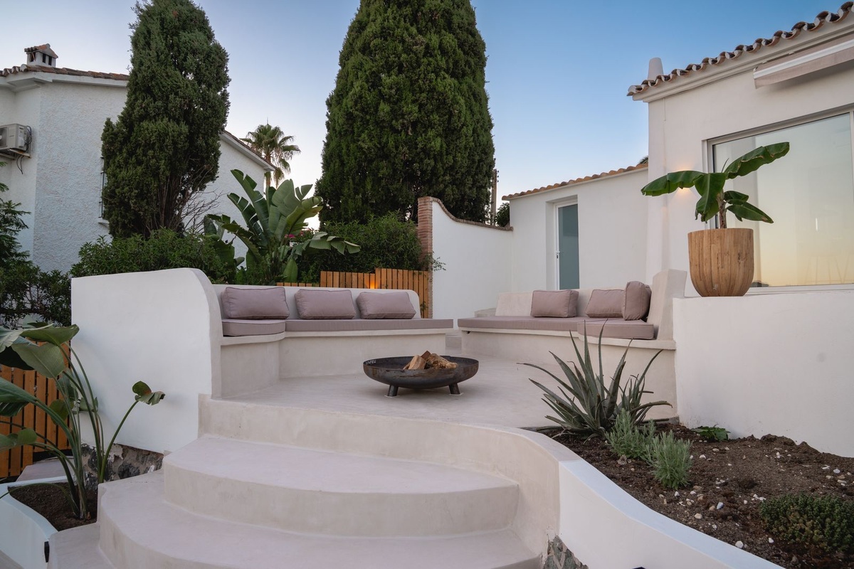 Det, der gør denne ejendom helt speciel, er det fantastiske uderum. I stedet for en traditionel have byder villaen på mange indbydende sidde- og afslapningsområder omgivet af smuk beplantning og grønt, hvilket skaber en afslappende atmosfære overalt. Udenfor finder du også en helt ny privat pool, en udendørs bruser ved siden af poolen, et fuldt udstyret udekøkken, en sauna og et hyggeligt opholdsområde med bålplads, perfekt til at nyde Marbellas fantastiske klima med familie og venner.