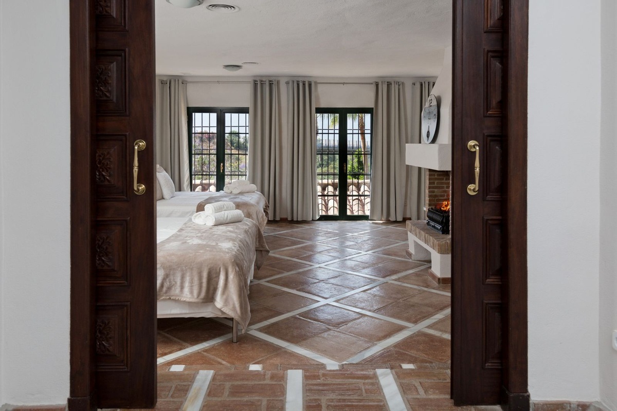 Ejendommen optager næsten 1.000 m² udsøgt designet boligareal og er omgivet af velplejede haver og fredfyldte bjergudsigter, hvilket skaber en atmosfære af total afsondrethed og ro.Interiøret kombinerer moderne luksus med klassisk andalusisk karakter, med lyse opholdsområder, flere elegante lounger og raffinerede rum til både afslapning og underholdende.