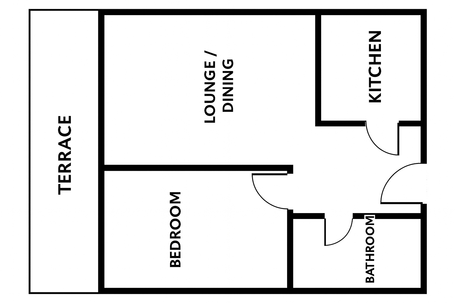 Træd ind i en indbydende entré, der fører til en rummelig stue og spisestue, perfekt til afslapning eller underholdning. Store vinduer fylder rummet med solskin og skaber en lys og indbydende atmosfære. Herfra kan du få adgang til den private terrasse, det ideelle sted at slappe af og nyde din morgenkaffe eller spise udendørs, mens du nyder de fredelige omgivelser.