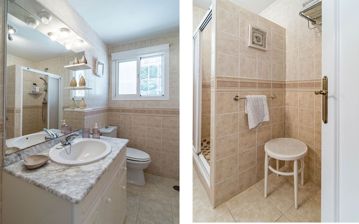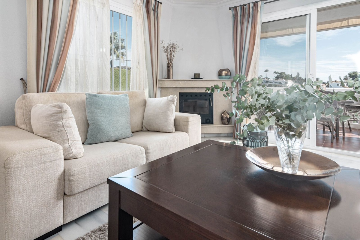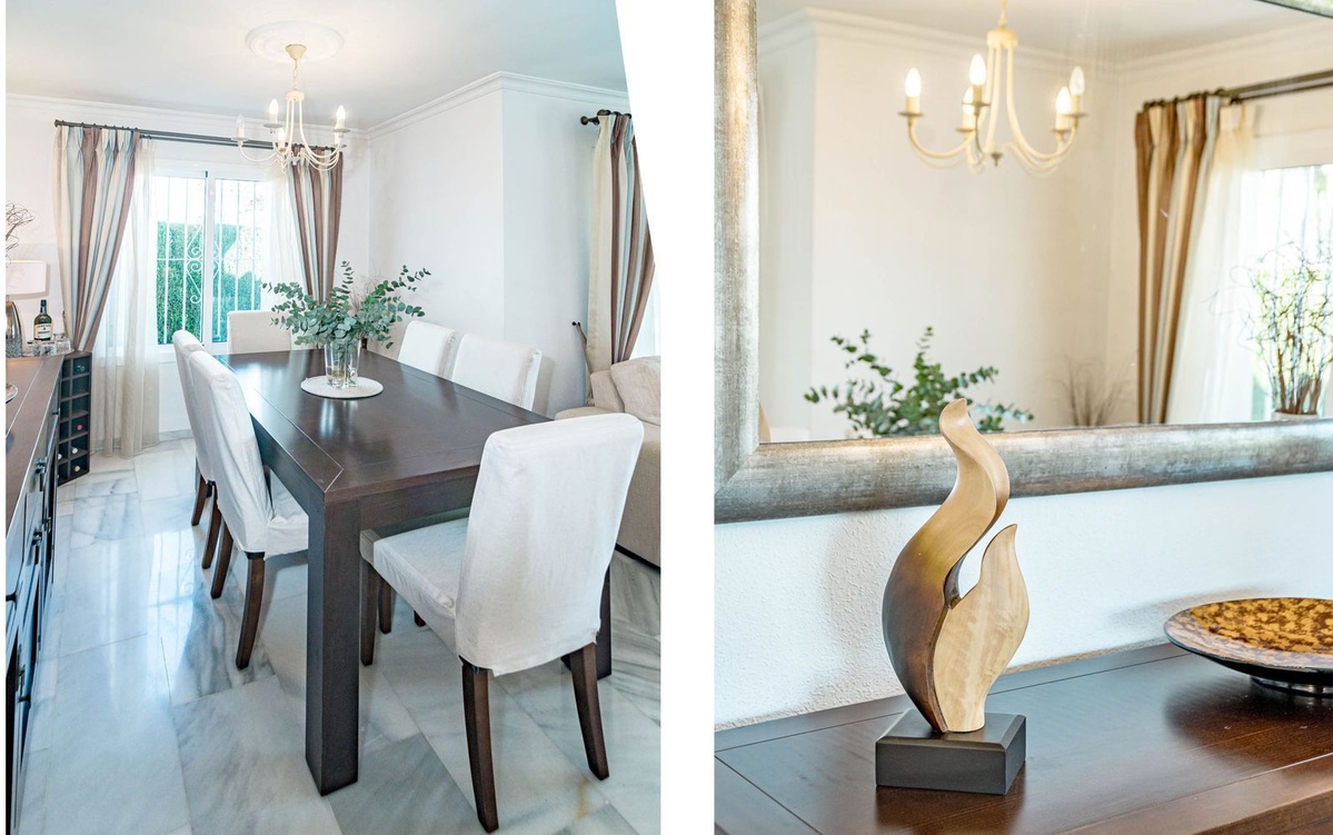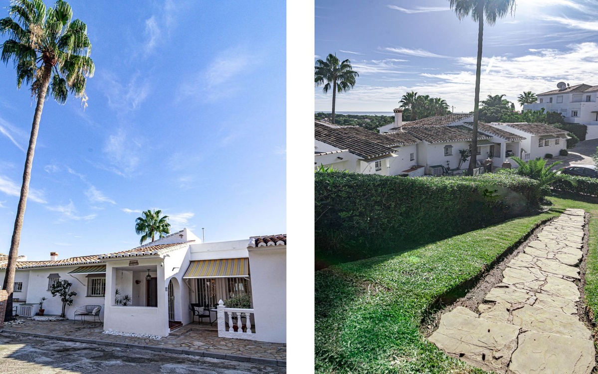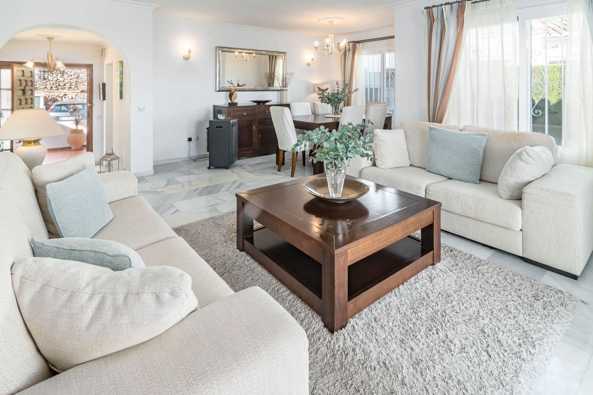 Oplev denne charmerende villa til salg i Los Naranjos, et intimt og fredeligt samfund med kun 9 selvstændige boliger, ideelt beliggende i det frodige boligområde Jardines de Calahonda.Denne beliggenhed grænser op til den smukke Cabopino Golfbane og byder på ro, grønne områder og fremragende adgang til Calahondas faciliteter.