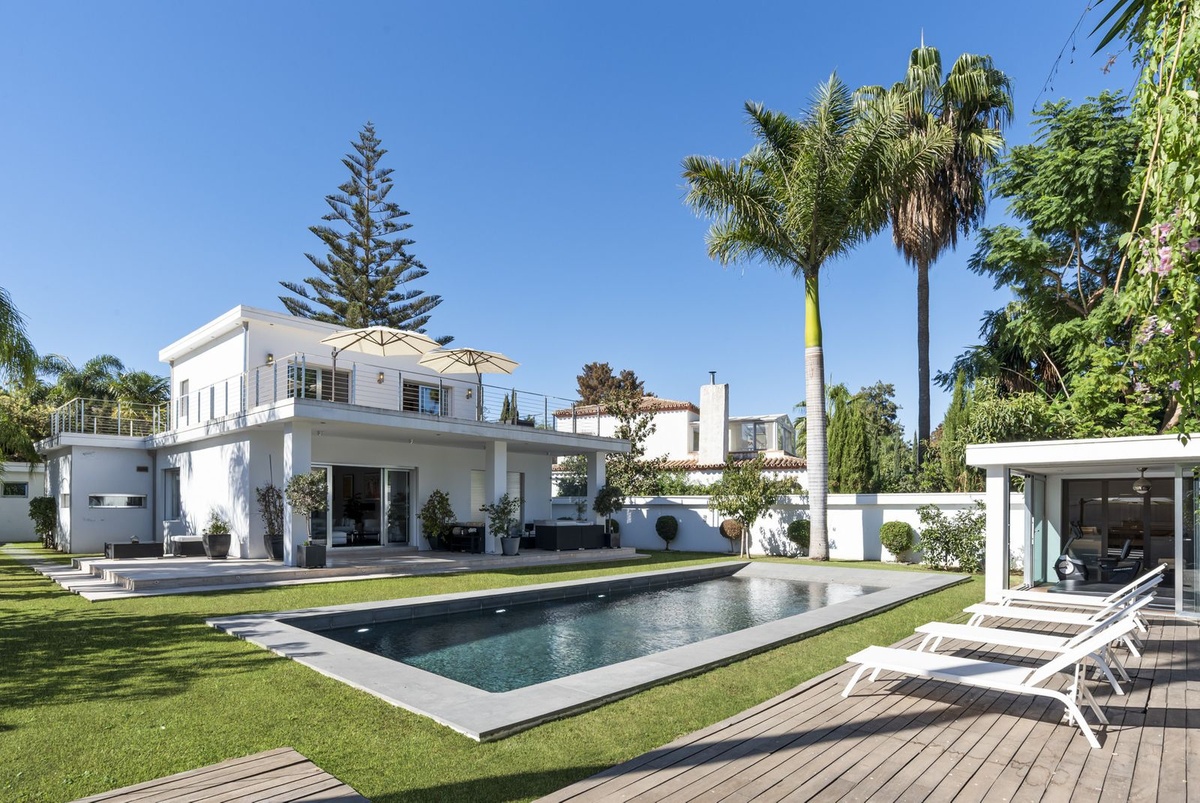 Ideally located in the heart of Nueva Andalucía, this elegant contemporary villa combines modern design, Mediterranean charm, and a prime Marbella address. Within walking distance to Centro Plaza and Puerto Banús, the property enjoys one of the most convenient and desirable settings in the area — perfect for both living and investment. Despite its central location, the villa offers exceptional tranquility, as it is situated on a quiet dead-end street with no through traffic.