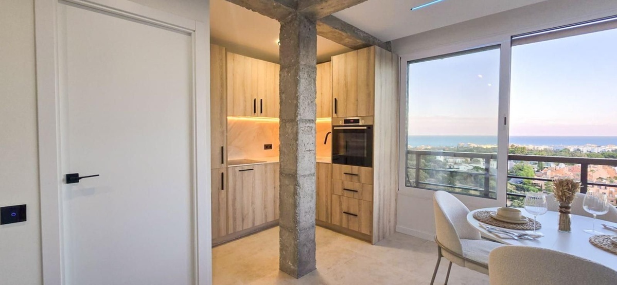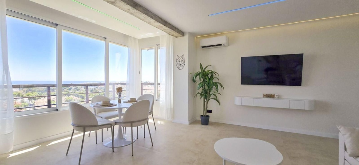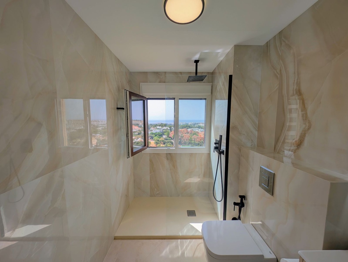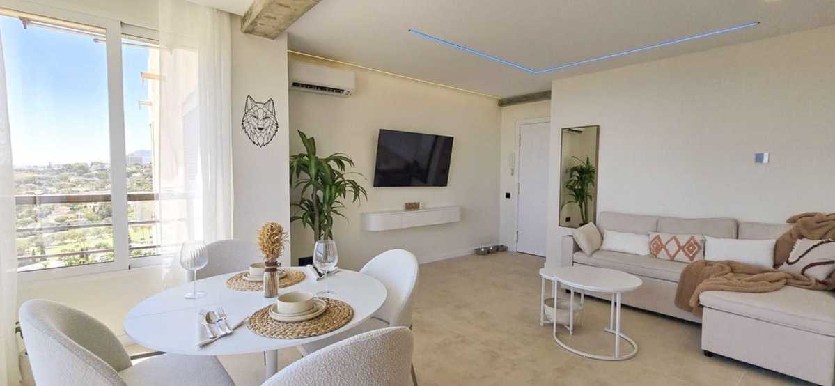 Denne fuldt renoverede PENTHOUSE-lejlighed med 1 soveværelse og 1 badeværelse tilbyder den perfekte blanding af moderne livsstil og komfort, beliggende i hjertet af Nueva Andalucía, Aloha. Den har en spektakulær havudsigt over både La Concha-bjerget og Gibraltar og er et fredeligt, men sammenhængende fristed tæt på alle faciliteter.