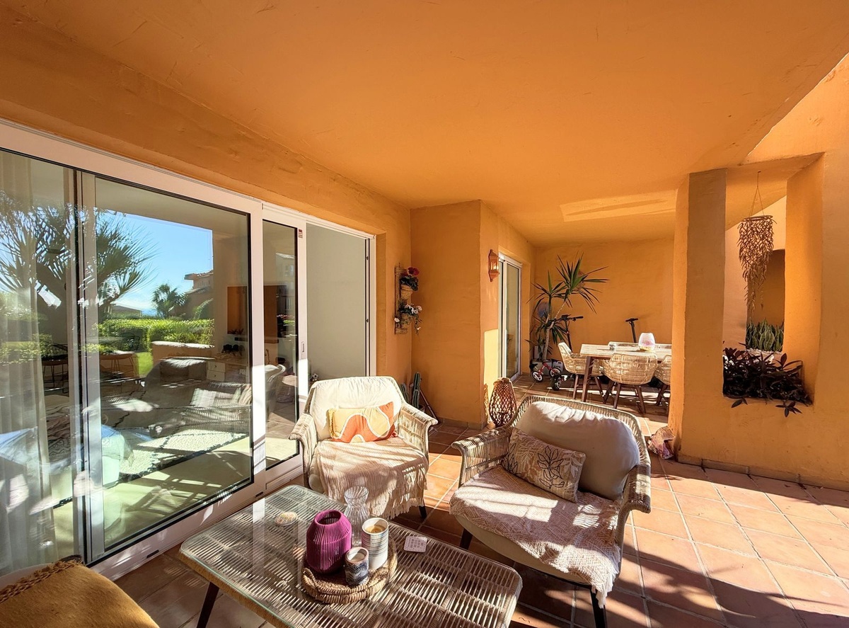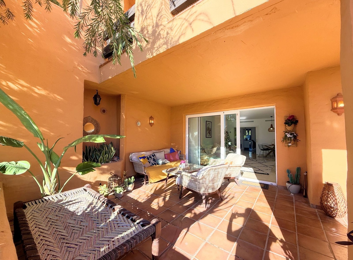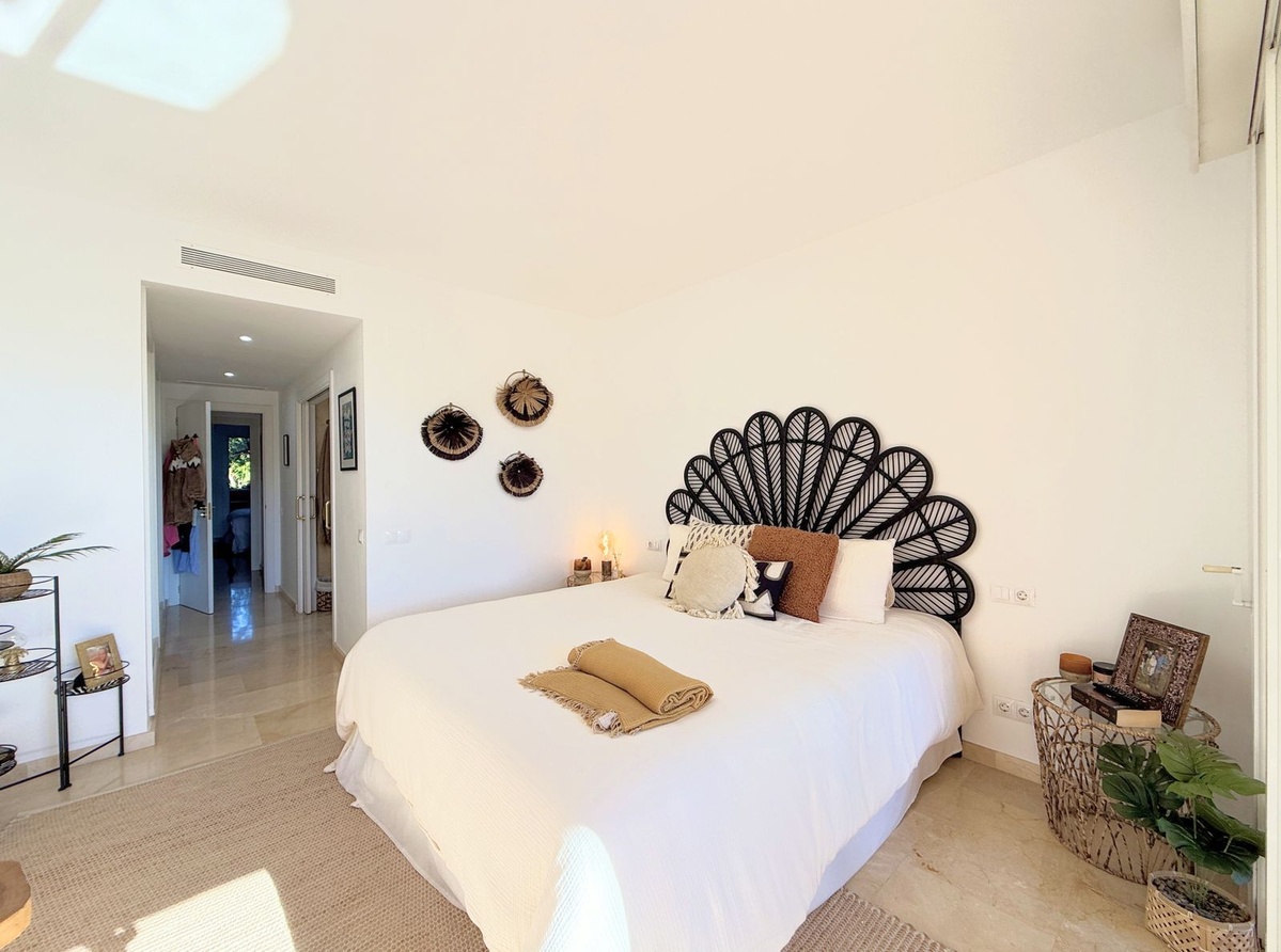 This sophisticated ground-floor apartment, all on a single level, perfectly combines elegance, comfort, and Mediterranean charm. It features 3 spacious bedrooms, 2 full bathrooms, and a spectacular terrace with panoramic views of the sea, the pool, and the lush gardens of the complex.