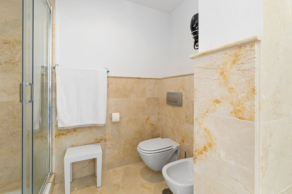 Denne elegante Marbella penthouse har 3 soveværelser, 2 badeværelser, 1 gæstetoilet og et separat vaskerum. Hvert værelse har en smuk udsigt over havet og kystlinjen, mens generøs opbevaringsplads i hele boligen gør den ideel til både permanent beboelse og som luksusferieejendom.