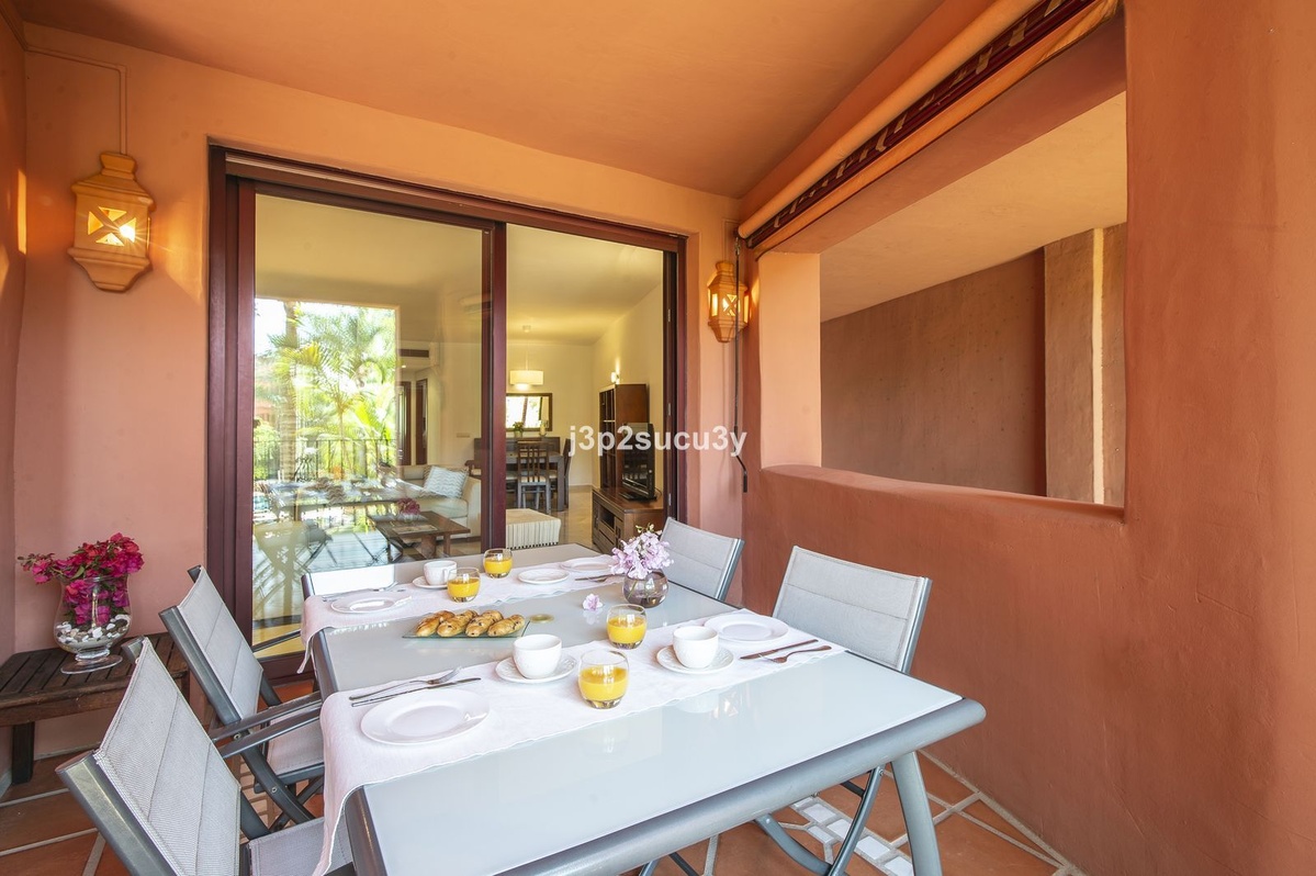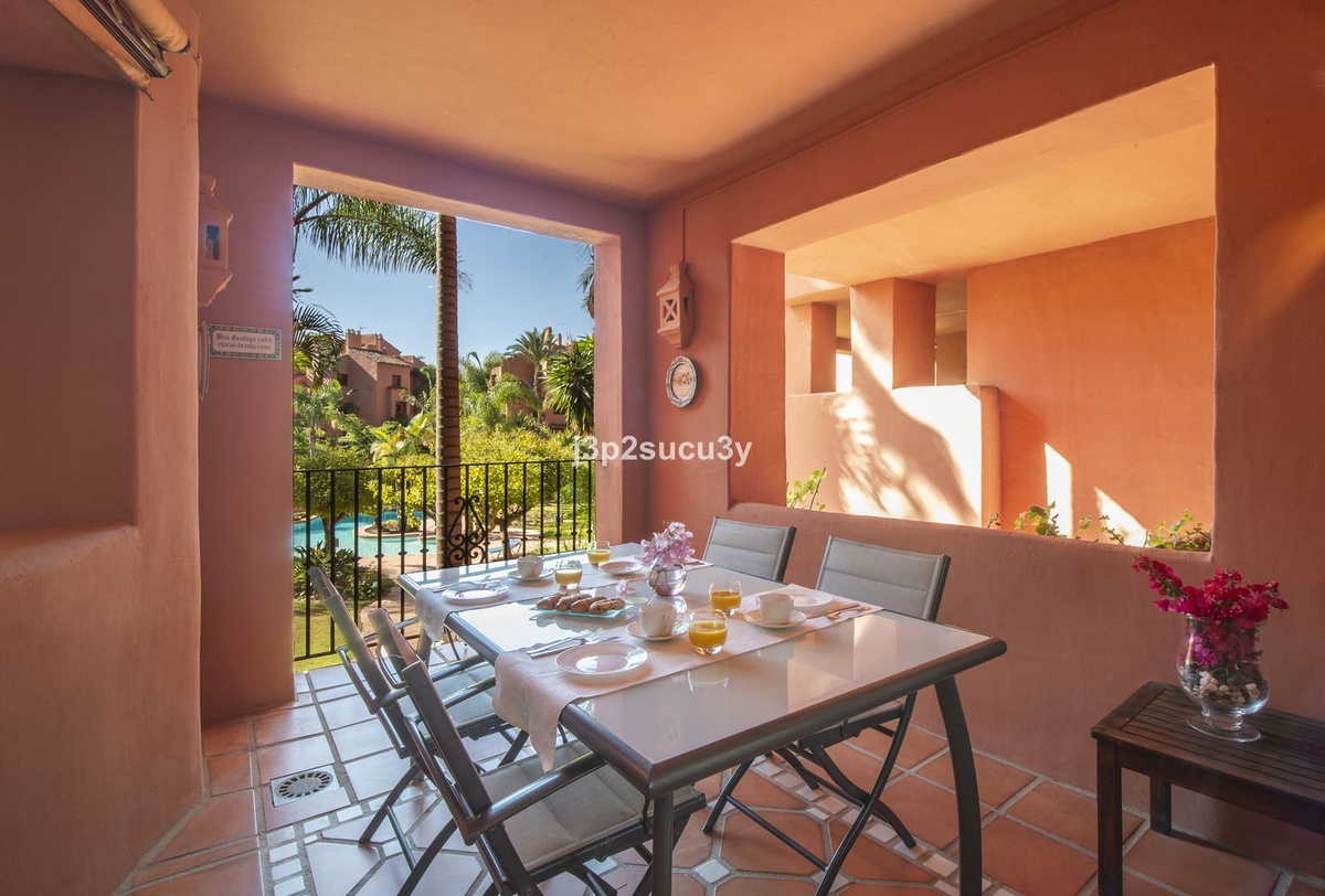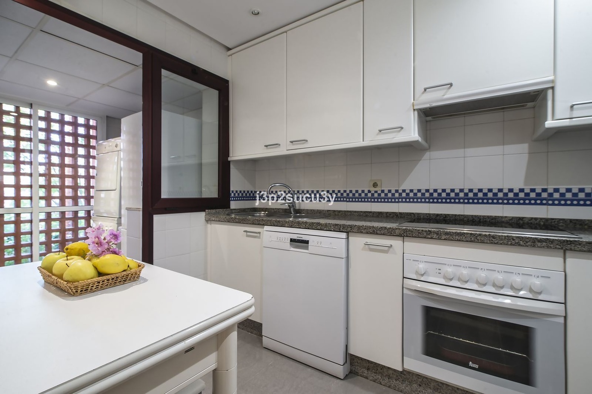 South-facing 3-bedroom, 2-bathroom apartment featuring a spacious living-dining area with access to a terrace overlooking the tropical gardens of the complex. Fully equipped kitchen. Master bedroom with en-suite bathroom. Includes private parking space and storage room. The urbanization offers beautiful tropical gardens and well-maintained green areas, located just 400 meters from Alicate Beach.