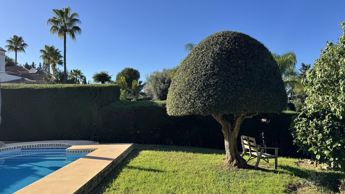Set on an expansive 1,547 m² private plot with mature citrus trees and panoramic views across the El Paraíso Golf Course, Villa Gardenia presents a rare opportunity in the heart of the New Golden Mile. This charming frontline golf residence combines timeless Andalusian character with outstanding potential for a full refurbishment or a contemporary extension - transforming it into a modern masterpiece in an area where redeveloped villas reach €5-7M.