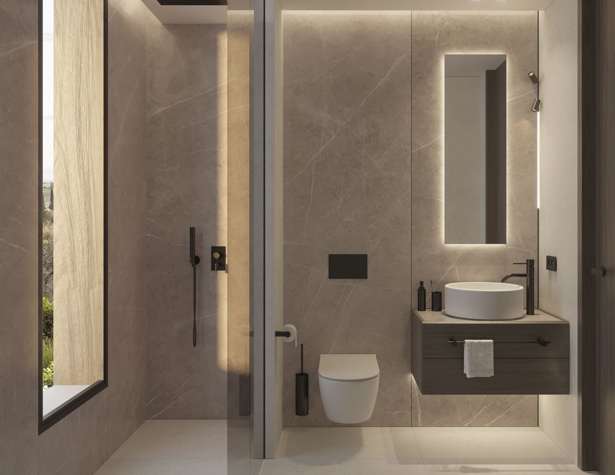 - 3 soveværelser, 3 badeværelser og 1 toilet.