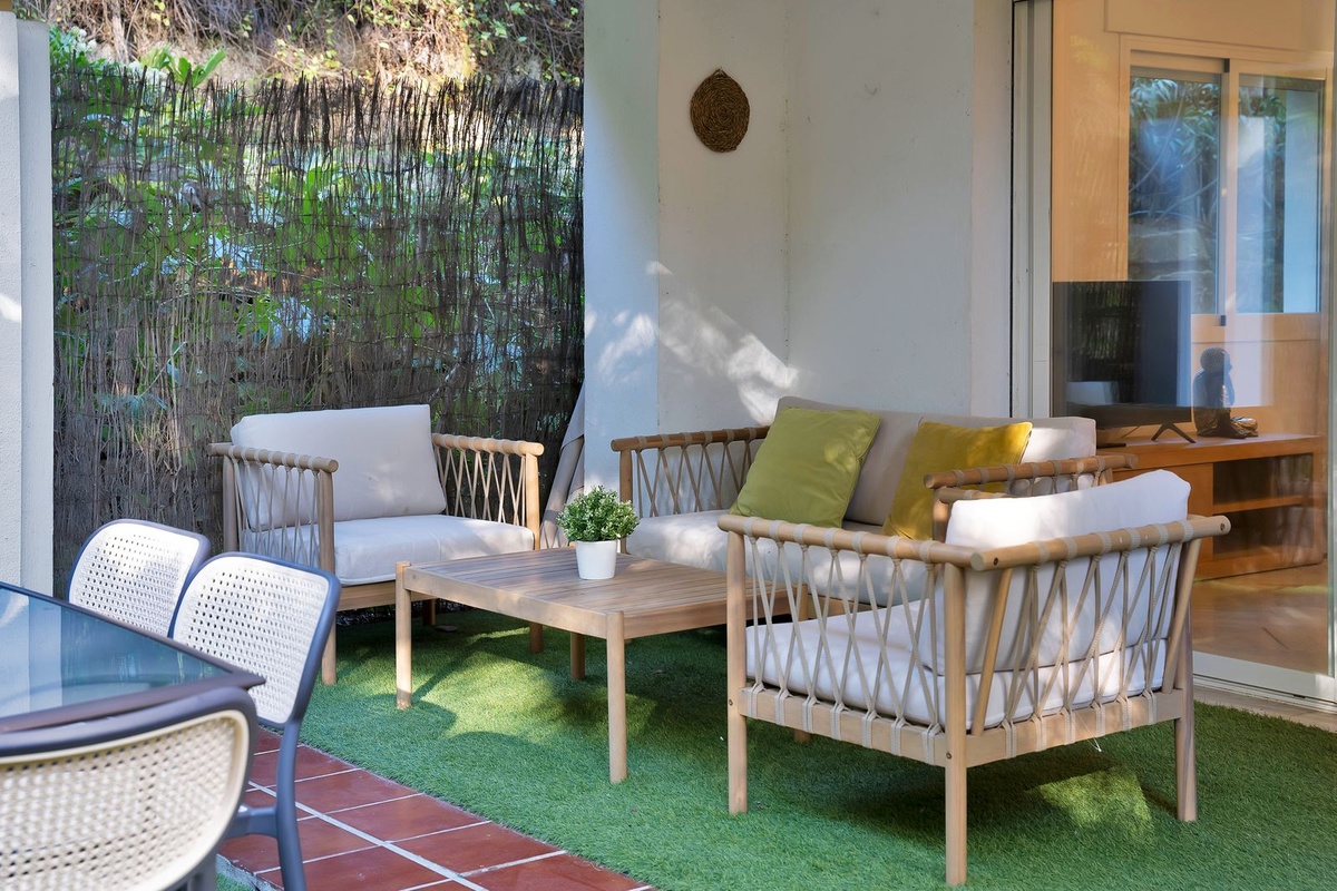 We present this beautiful property located in one of the most sought-after and prestigious areas of Marbella: the iconic Golden Mile, an enclave where luxury, comfort, and quality of life blend seamlessly.Just 800 meters from the beach, you can enjoy the Mediterranean with a pleasant 10-minute walk. The property is surrounded by all essential and high-end services: supermarkets, restaurants, national and international schools, institutes, pharmacies, bus stops, and the iconic Marbella Club and Puente Romano hotels. A privileged location that allows you to walk to the city centre and enjoy everyday life with total convenience.Connectivity is excellent: 5 minutes by car from Puerto Banús, the same distance from Marbella’s town centre and Old Town, and with immediate access to the motorway. Málaga Airport is only 35 minutes away.The property is located within a gated community built in 2002 that offers security, well-maintained gardens, a communal pool, and a paddle court—making this home a gem for those seeking comfort, style, and quality.This west-facing ground-floor apartment is perfect for enjoying the afternoon sun and features a charming 20 m2 porch and private garden, providing privacy and a cosy atmosphere.The total built area of 117 m2 is distributed as follows:•Spacious living-dining room filled with natural light•Modern open-plan kitchen, completely renovated in 2023•2 bedrooms and 2 full bathrooms•Private garden, ideal for relaxing or entertaining guestsAdditionally, it includes an underground parking space with direct access to the apartment via a lift, offering maximum convenience. The property is equipped with air conditioning, heating, and is adapted for people with reduced mobility.A unique opportunity thanks to its PREMIUM location on the Golden Mile. Perfect as an investment, holiday home, or permanent residence. High rental profitability due to strong demand in the area throughout the year. Ideal for those seeking to elevate their quality of life or invest in one of the most promising areas of the Costa del Sol.A property with Mediterranean charm, where modern comfort meets the exclusivity of Marbella.The abbreviated information document is available. Expenses: Taxes (ITP or VAT+AJD) + Notary and Land Registry fees.BRF