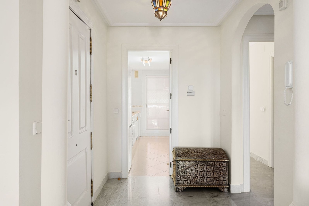 Situated in the sought-after Señorio de Aloha community in Nueva Andalucia, this attractive apartment offers two bedrooms and two bathrooms, including an en-suite. The property features 86m² of interior space complemented by a 23m² terrace, where open views of the sea and surrounding mountains can be enjoyed. The home includes a well-equipped kitchen, air conditioning, marble flooring, a fireplace, and built-in wardrobes. A. The gated complex provides excellent facilities, including two swimming pools, communal gardens, a padel court, underground parking, storage, and lift access. Conveniently located near beaches, golf courses, shops, dining options, schools, and transport.