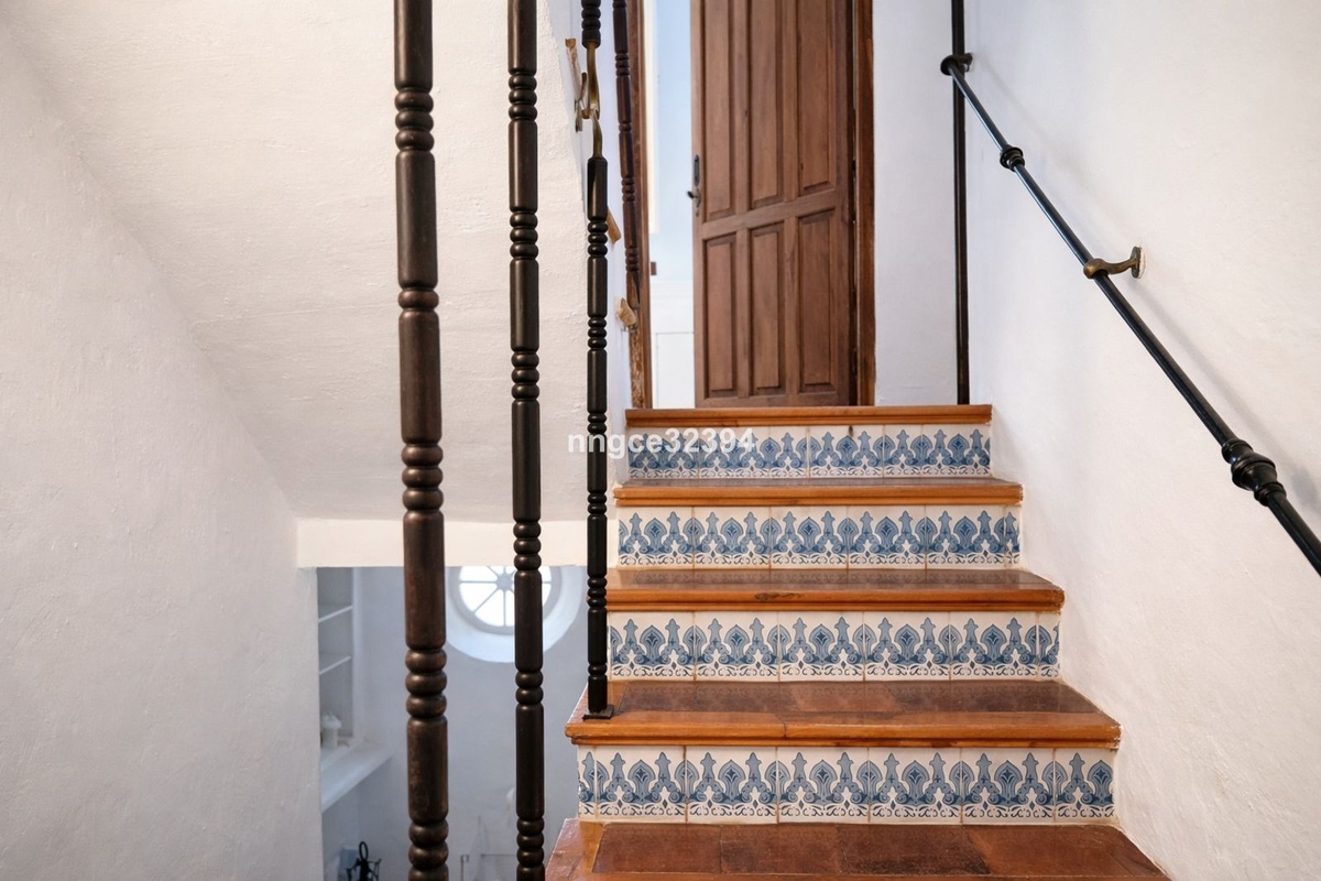De øvre etager rummer velproportionerede soveværelser, herunder en master suite med eget badeværelse, alle med bevarede originale andalusiske detaljer såsom træskodder og brug af naturlige materialer overalt.
