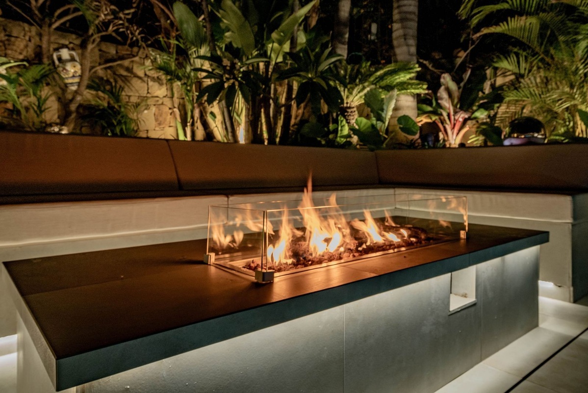The highlight of the outdoor oasis is undoubtedly the swimming pool, with the option to add heating, and a sunken fire pit, offering a captivating ambiance for evenings spent under the stars. Tropical landscaped gardens, an outdoor shower, toilet, and changing room complete the picture-perfect setting.