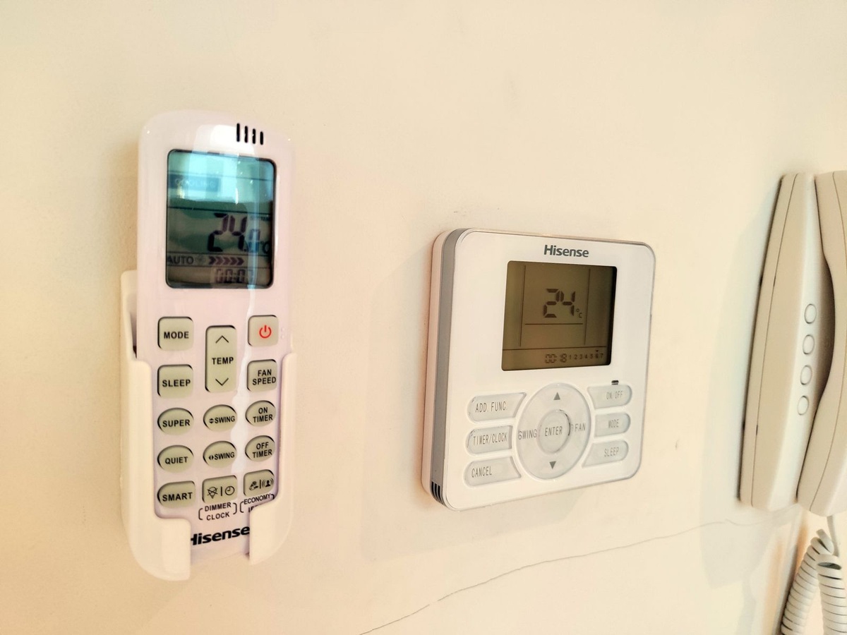 Accommodation for up to 4 guests is provided in a fully air-conditioned penthouse apartment with two double bedrooms, two bathrooms, a fully equipped kitchen with modern appliances, and a spacious living room. The 200 m² apartment includes a large terrace with views of the garden and surroundings.