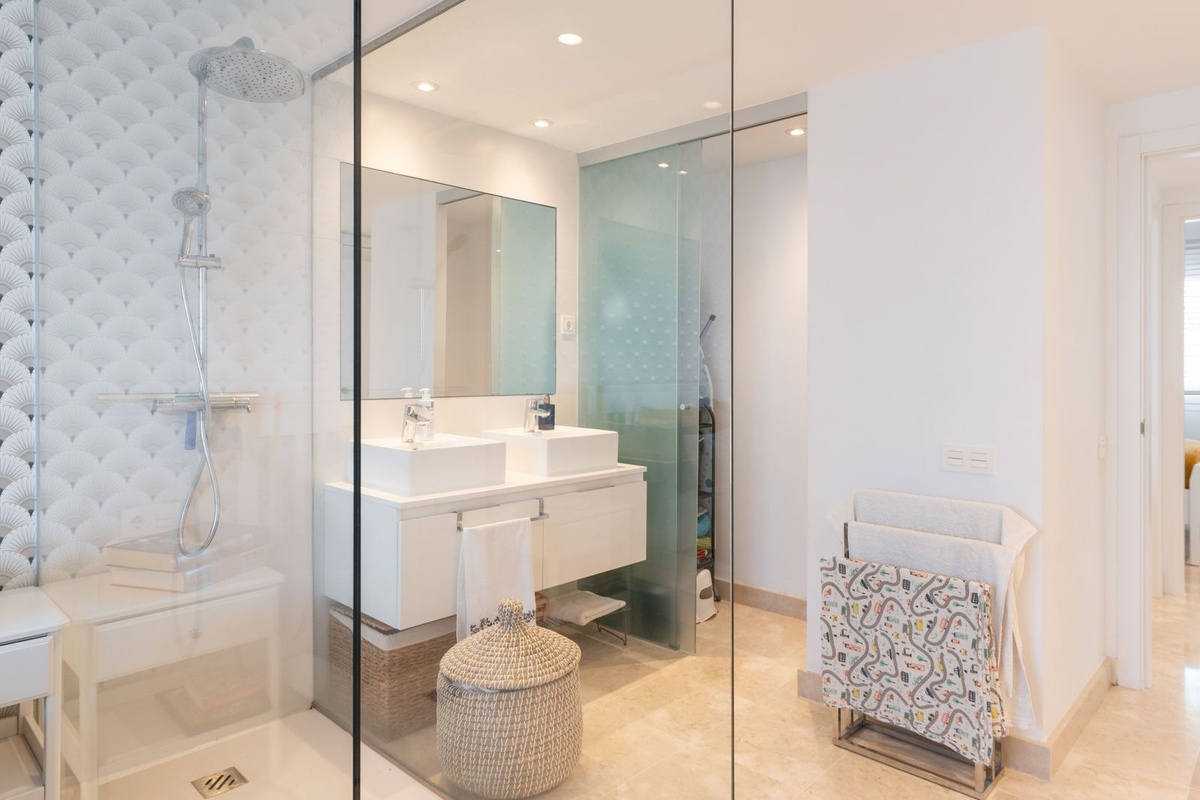 The property is very bright and sunny and stands out for one of the largest and sunniest terraces in the entire complex, offering partial sea views and an ideal outdoor space to enjoy the Mediterranean climate all year round.