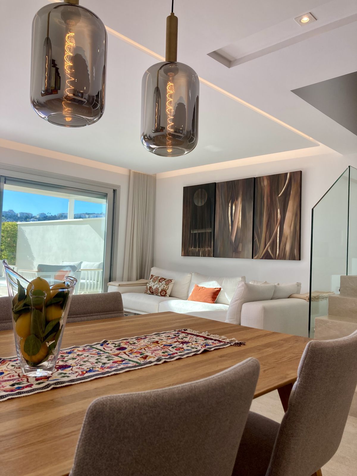Distributed over three levels, the house impresses with its airy and generous layout, making it ideal for both families and couples. Large windows throughout the property provide abundant natural light and create a bright, open living atmosphere. An integrated lift adds extra comfort and makes the property highly attractive for long-term living. A additional highlight is the spacious rooftop terrace, which invites you to relax, sunbathe, and enjoy the surrounding landscape. From here, open views extend over the golf course and the gentle hills of La Cala de Mijas which offer a perfect setting to embrace the Mediterranean lifestyle.