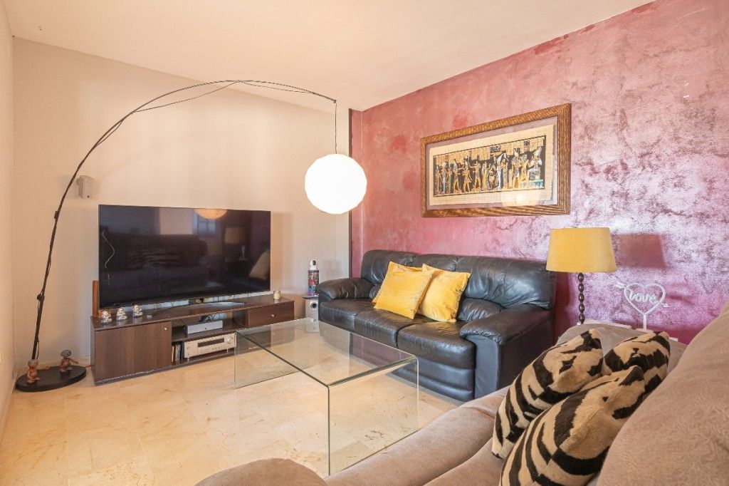 Indgang, separat og fuldt udstyret køkken, stue / spisestue med adgang til halvdelen af terrassen, som er smagfuldt lukket og omdannet til en anden stue og / eller soveværelse (dette kunne være et tredje soveværelse) med panoramaudsigt over bjergene, byen, poolen og endda havudsigt. Herfra kan du få adgang til den anden halvdel af den solrige terrasse med 100% privatliv og ro, hvor der er masser af plads til at nyde solen, et grillområde, et spisebord og også opbevaringsplads.
