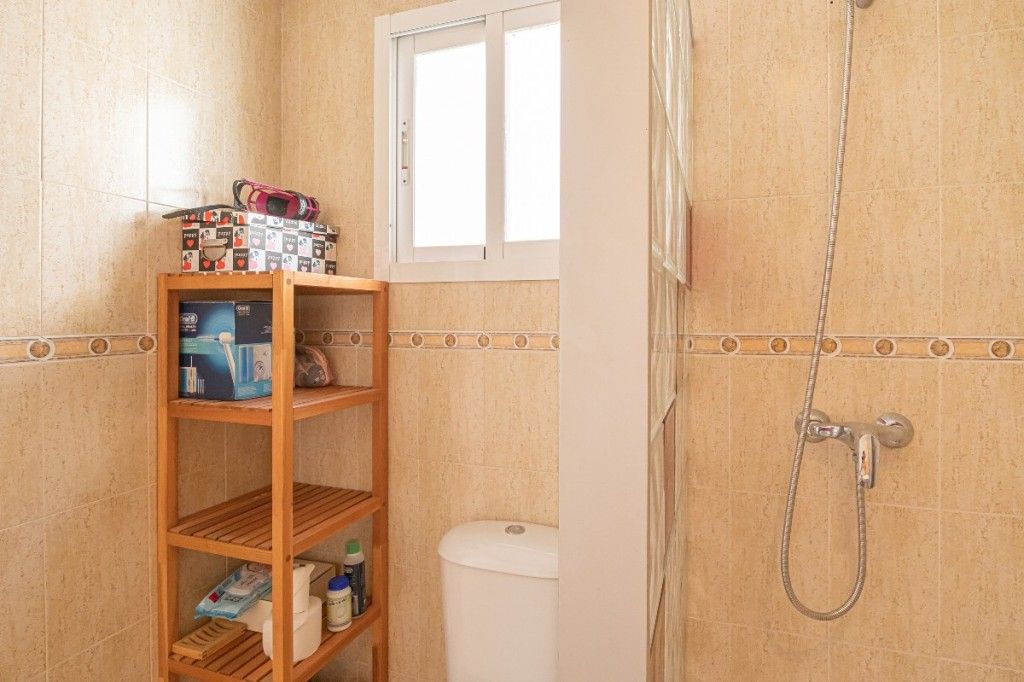 Når vi vender tilbage til interiøret, finder vi 2 soveværelser og 2 badeværelser. Det store soveværelse har plads til en dobbeltseng, et indbygget klædeskab og eget badeværelse. Det andet soveværelse har direkte adgang til den store solrige terrasse, og der er også et andet badeværelse med bruser.