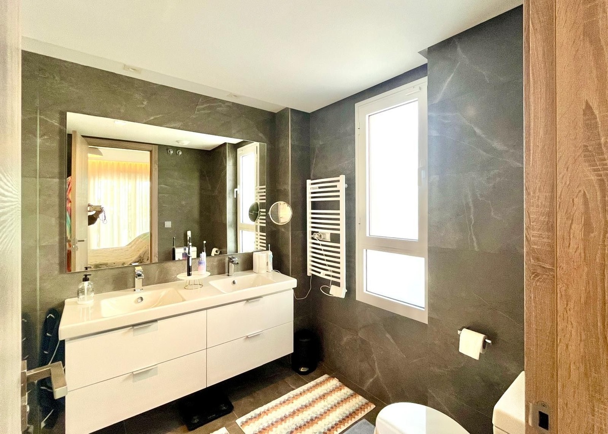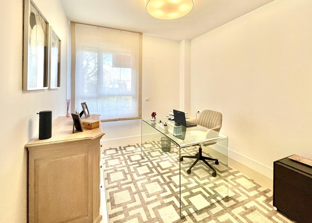 Two comfortable bedrooms are complemented by a third room currently used as an office, easily convertible into an additional bedroom according to your needs (family, guests or home office). The bathrooms feature a timeless aesthetic, with carefully chosen finishes and a sense of wellbeing that is in harmony with the rest of the apartment.