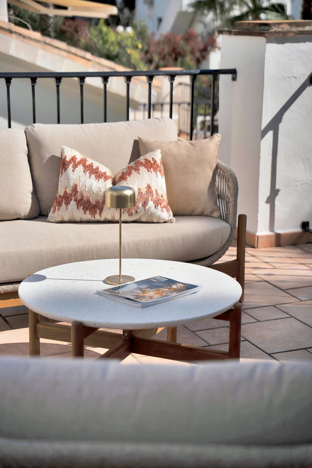 Den nederste etage åbner direkte ud til den private have, hvor der findes jacuzzi og solsenge – et ideelt sted at slappe af og nyde livsstilen på Costa del Sol.