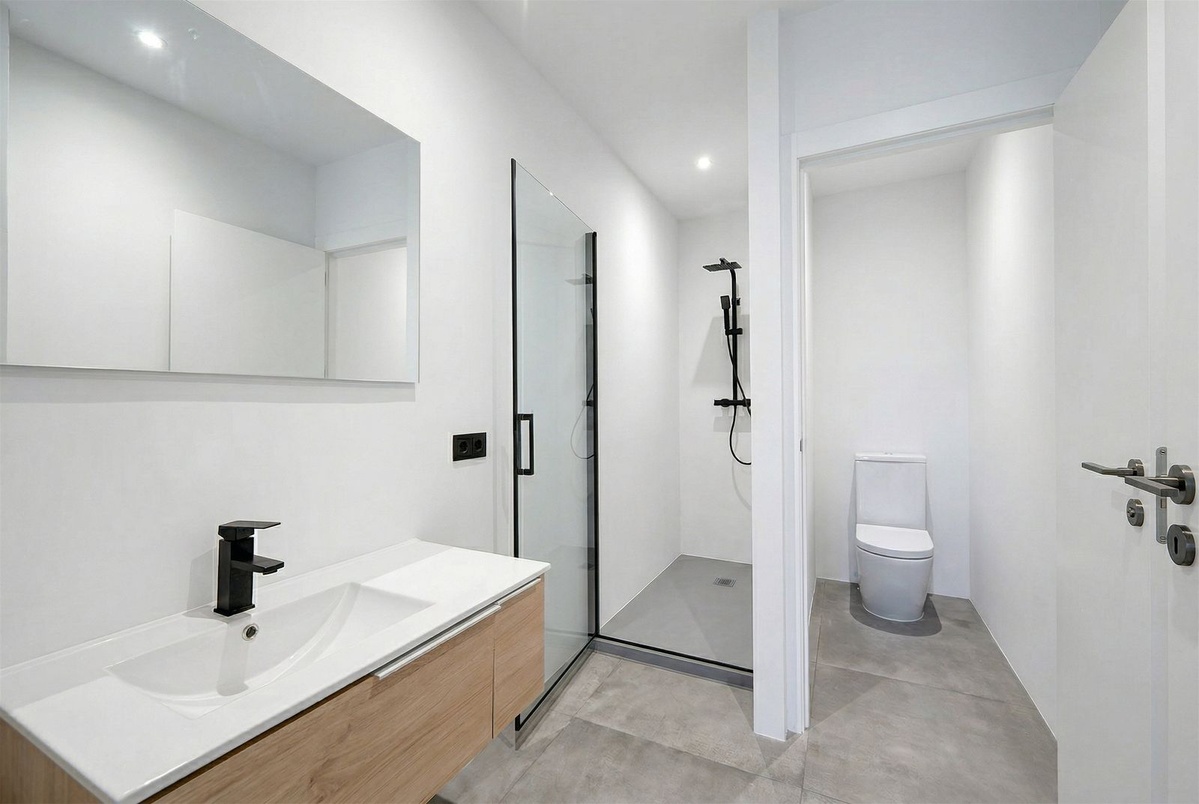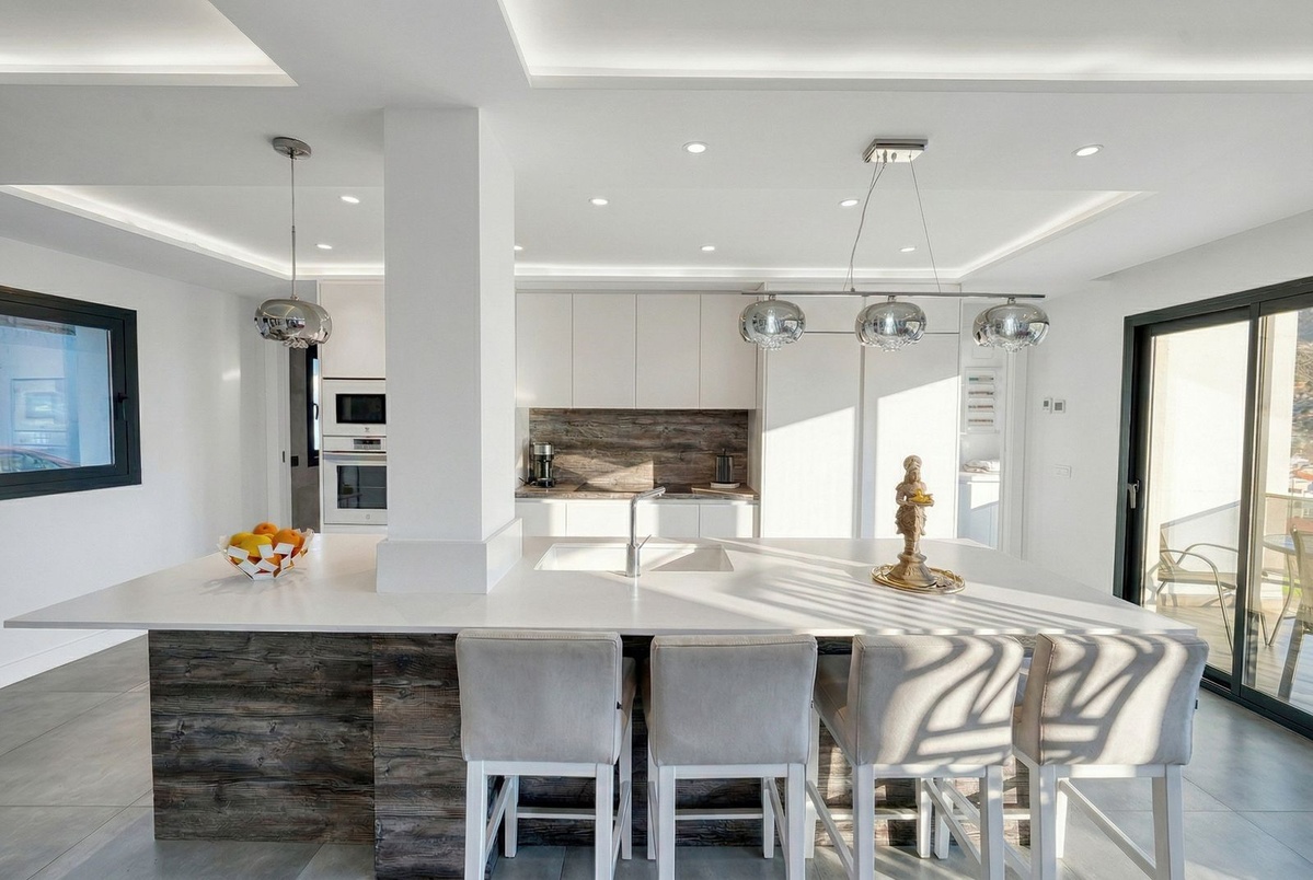 The spacious property spans four floors and features a magnificent sun terrace, giving the feeling of living directly in the forest. Fully renovated in 2022, the villa combines modern elegance with contemporary comfort. The bathrooms have been stylishly upgraded, and the open-plan American kitchen is seamlessly integrated into the living room.