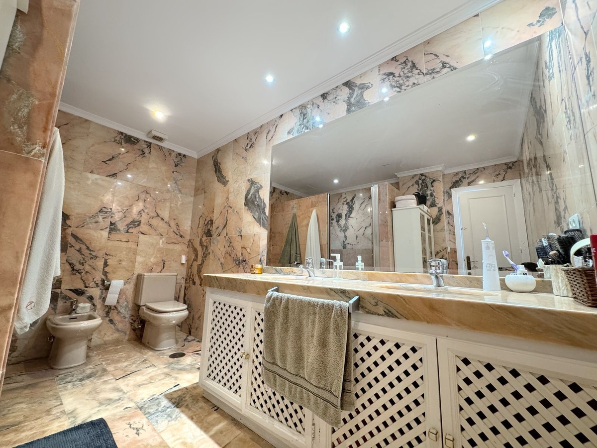 The property stands out for its brightness and spaciousness. It offers an elegant double living room with a dining area, very spacious and filled with natural light, with direct access to a large main terrace overlooking the gardens and the pool—perfect for enjoying outdoor living.