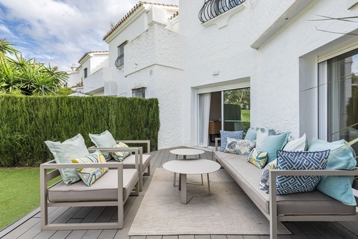 Fantastic front line golf townhouse with direct access and great views of Los Naranjos Golf course located in Nueva Andalucía very cl ...