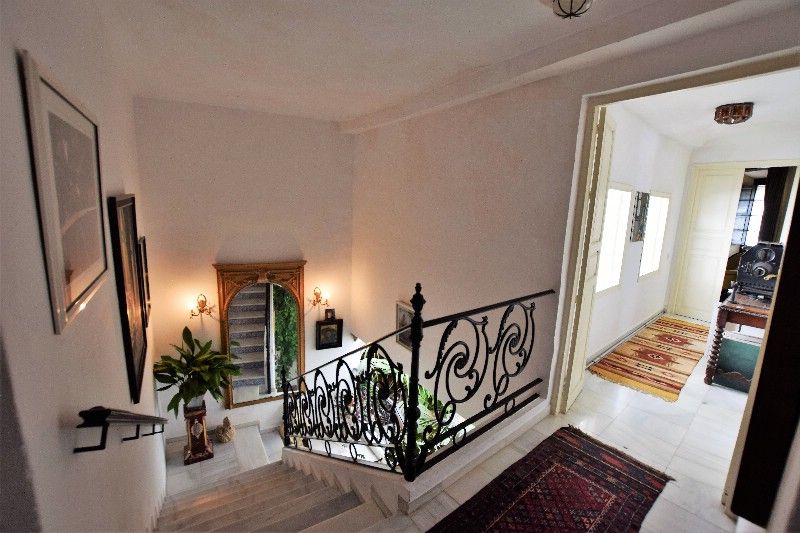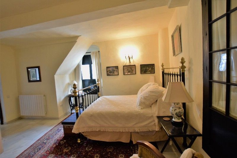 On the ground floor we find a hall with Sevillian tiles that gives way to a glass covered moorish patio with a tea room; on the right we have a spacious and cozy living room with fireplace and a bright Room in corner. On the other side, we have a toilet, a large dining room with 2 large windows and serving hatch from the kitchen which in turn is connected to an old living room with fireplace.
