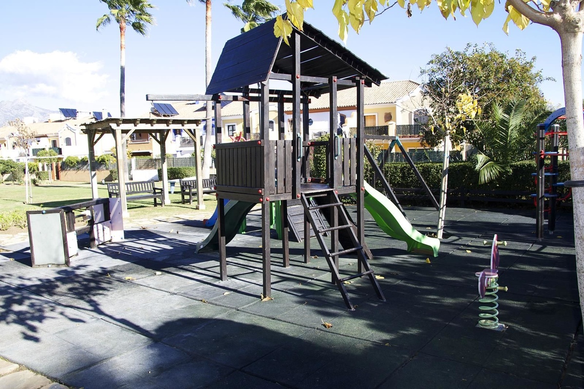 Luxury house set within a very secure complex in Guadalmina Alta. The property comes with 4 bedrooms and 3 bathrooms. Large living and dining area leading on to terrace and garden. Kitchen with outdoor space, upstairs 3 large bedrooms all with fitted wardrobes, master bedroom having large en-suite and terrace. Private parking available at the front of the property and the complex boasts large gardens with children's play areas. A perfect family home within a secure complex and only 10 minutes from Marbella.