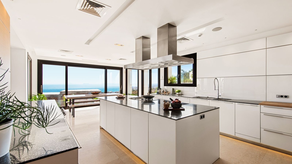 The spacious Bulthaup kitchen with Gaggenau appliances, has a large island and a front dining room where you will enjoy wonderful breakfasts with panoramic views of the bay of Marbella.